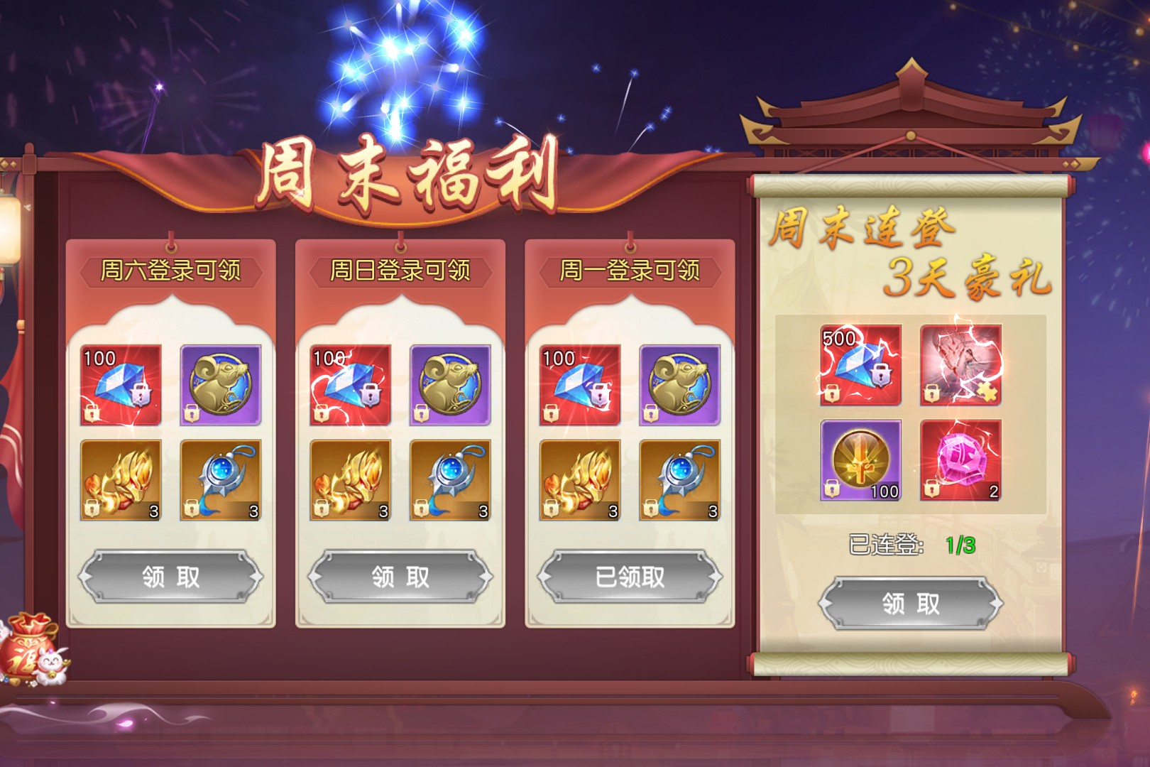 周末福利有哪些? 作者:一鹿向钱 发布日期:前天 周末福利活动要在周六、周日、周一登录可领取钻石、生肖图标、麒麟臂精华、特殊道具等奖励,连续登录3天还能领取更丰厚的豪礼。此外,还有白蛇传说随机礼包,1级即可使用,战力40000,打开后可随机获得不同的白蛇传说碎片。 全部评论 3 最新 最热 一鹿向钱 15小时前 0 给你找 酱紫嘛 昨天 0 开了一个 离了个大谱 昨天 0 恭喜发财 推荐游戏 查看更多 > 幻影龙城 明星兄弟助阵,爆率无限!一起开启传奇新篇! 传奇 挂机 圣物英雄 正版火影吾之忍道,这又是谁的热血青春! 回合 卡牌 疯狂邻居 免费10000抽!千套绝美时装开启甜蜜爱恋! 二次元 挂机 风暴天堂 新春高爆仙侠,狂欢福利刀刀爆真充卡! 仙侠 多人在线 辰东群侠传0.1折 玄幻小说迷必玩!正版遮天全场0.1折 加速版 仙侠 挂机 异能都市 首款赛博手游折扣服!上线即送2千代金券 挂机 赛博 今日热榜
