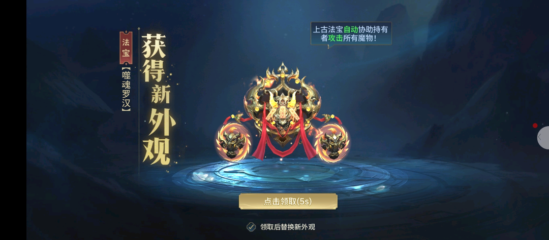 以及试玩千年寻仙解锁堕魔法宝-噬魂罗汉,金纹缠身、红绸飘曳的造型极具压迫感,与角色的黑紫战甲完美适配,颜值战力双在线。作为上古法宝,它能自动协助攻击魔物,刷图时自动清场,省去手动操作的繁琐。从东海遗迹激战奔波霸,到解锁这款强力法宝,养成线清晰又爽快。海底珊瑚与粉色霞光的场景氛围感拉满,法宝解锁的动画更是仪式感十足,这趟仙途冒险越玩越上头!