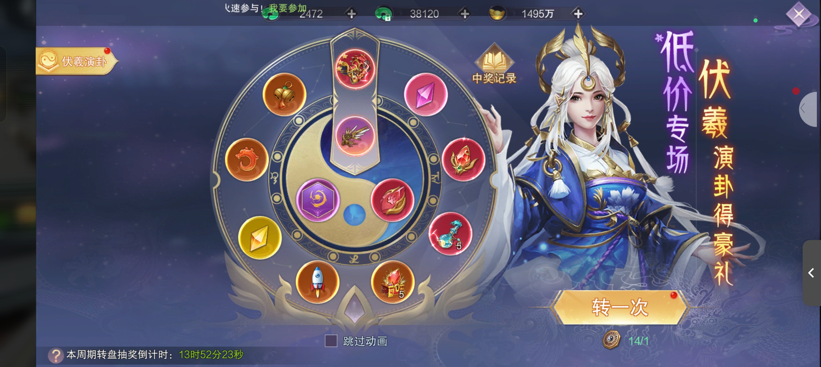这是《剑仙轩辕志》里的限时转盘抽奖活动,也是游戏里获取稀有资源的重要福利玩法。