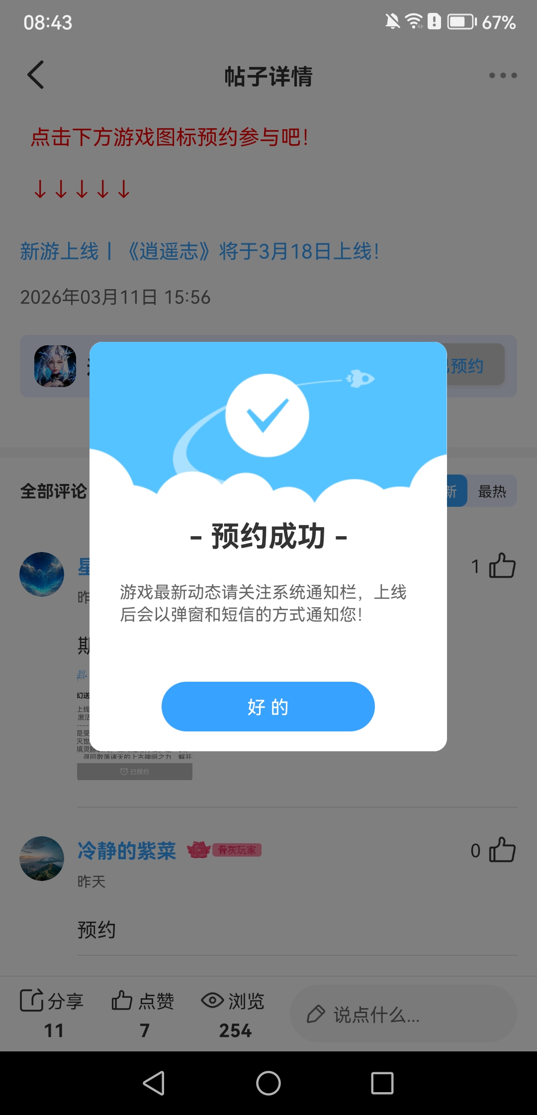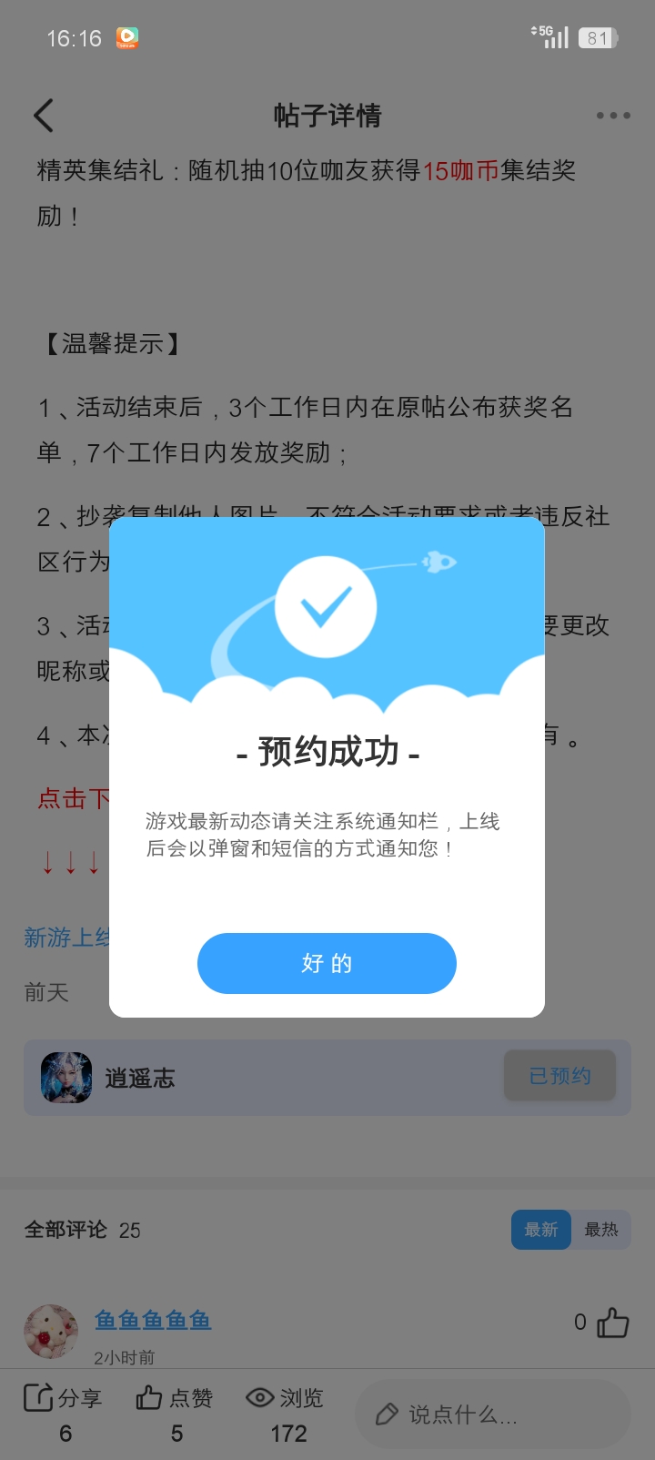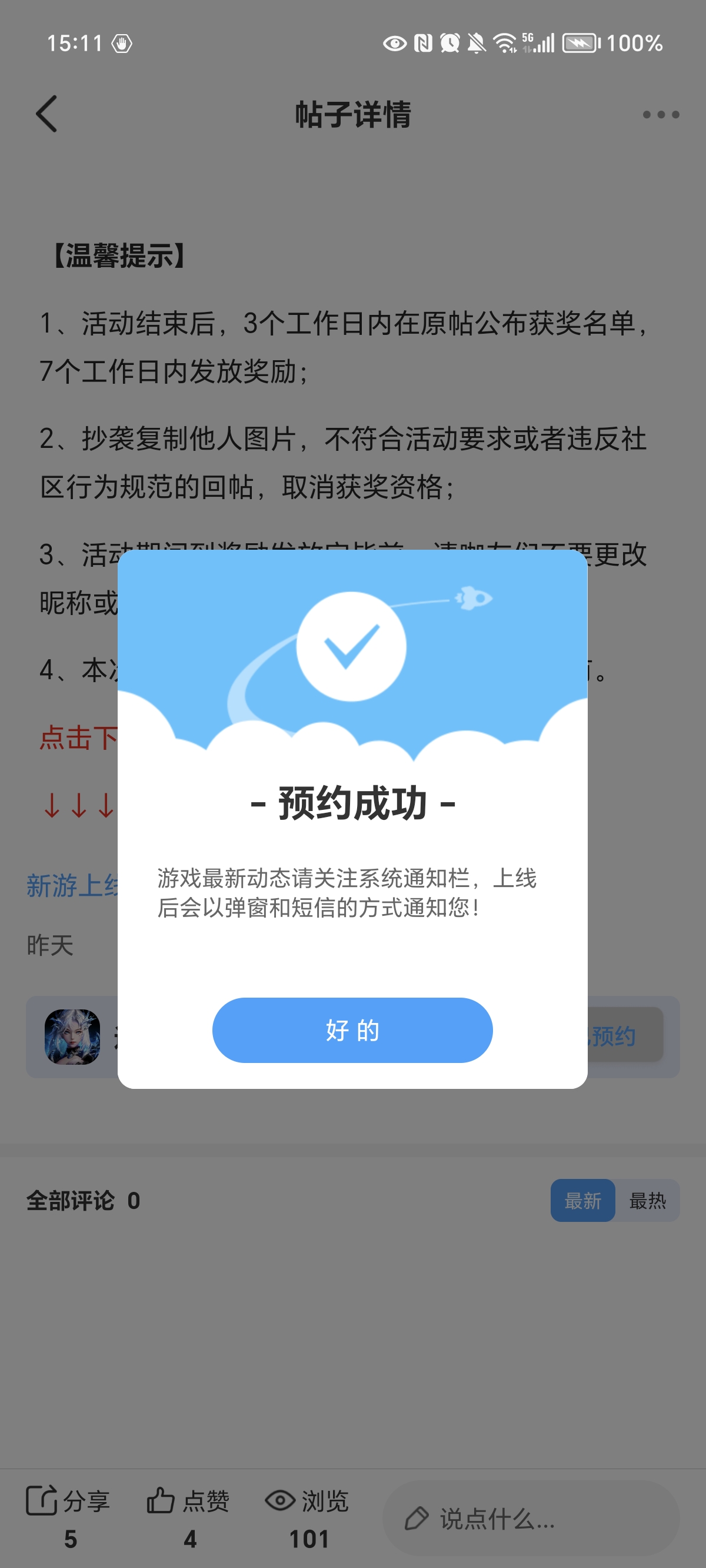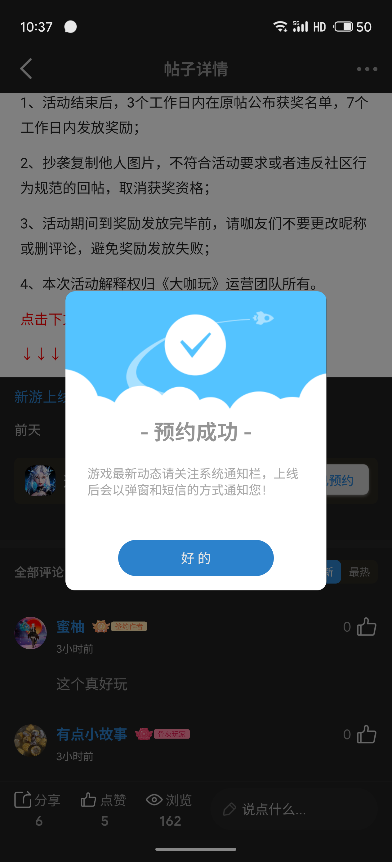 在本帖评论区分享预约游戏及首发后体验游戏截图或五星好评截图、评论,即可参与~