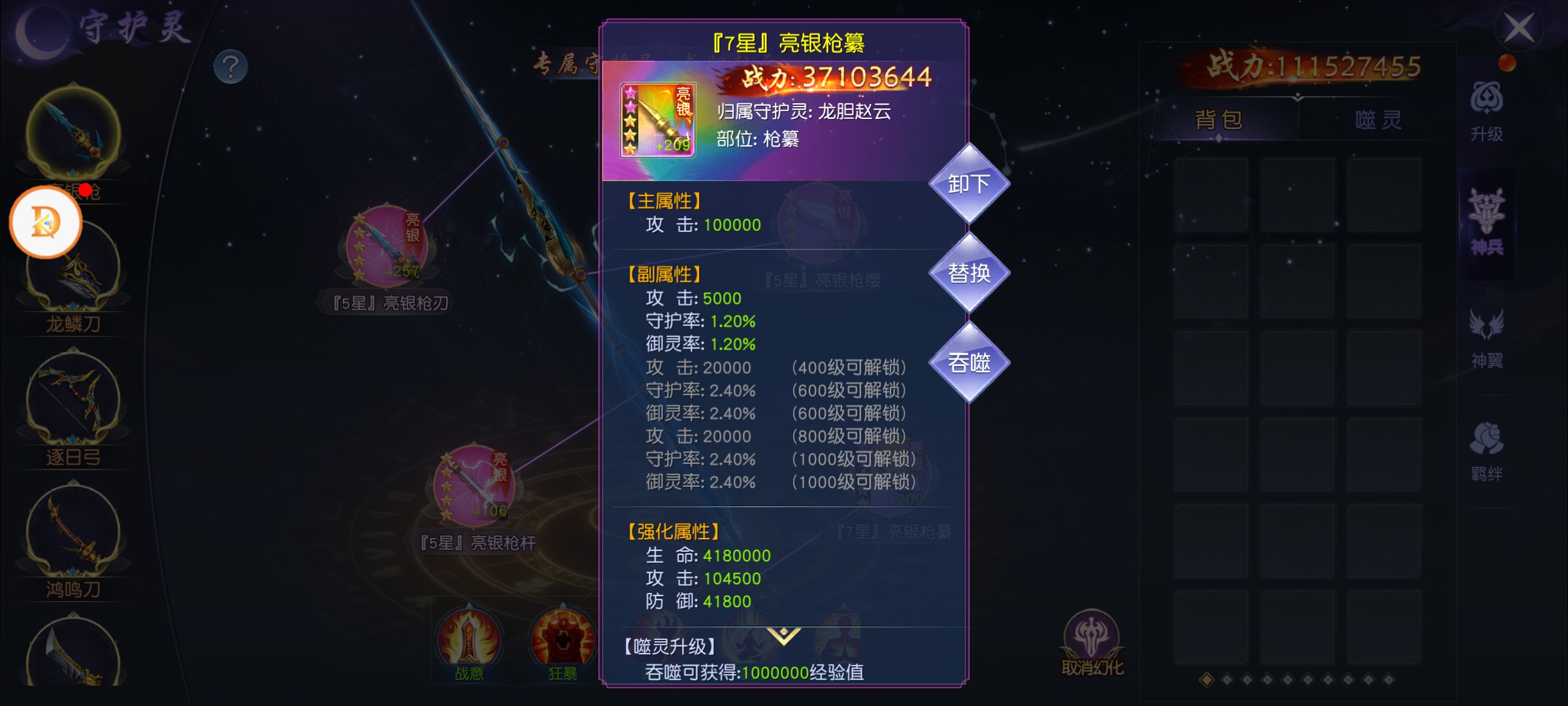 守护灵神兵 作者:往事如烟 发布日期:2026年03月15日 21:54 每个守护灵都有对应的神兵,神兵分为4个部位,4个部位都激活可解锁守护神兵。激活守护+神兵后可激活守护神兵形象。神兵噬灵可提升装备部位的等级,装备的神兵部位星级越高,可解锁的副属性条数越多。 全部评论 0 最新 最热 推荐游戏 查看更多 > 逍遥志 高福利魔幻送返利卷!坐骑免费领 魔幻 挂机 疯狂邻居 免费10000抽!千套绝美时装开启甜蜜爱恋! 二次元 挂机 铁血荣耀-0.1折 0.1折超爽热血打金复古版 0.1折 魔幻 梦幻甬城 魔幻界已疯,神器跟不要钱一样乱爆! 魔幻 挂机 幻影龙城 明星兄弟助阵,爆率无限!一起开启传奇新篇! 传奇 挂机 圣物英雄 正版火影吾之忍道,这又是谁的热血青春! 回合 卡牌 今日热榜