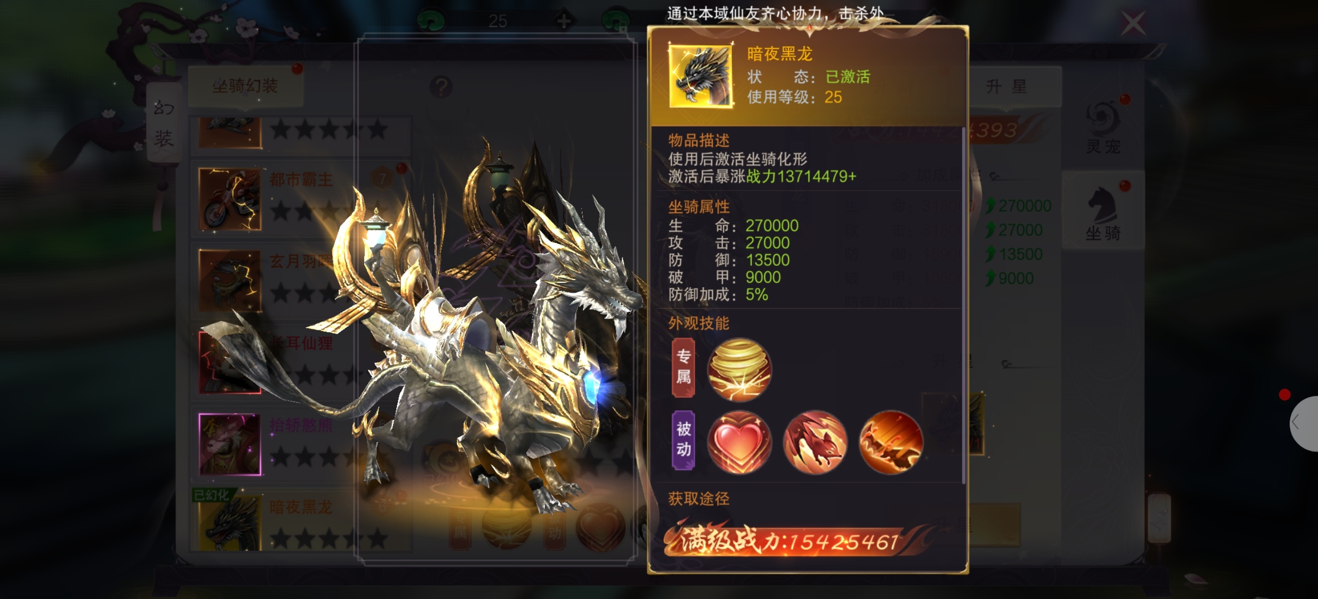 战力天花板坐骑登场!「暗夜黑龙」霸气亮相,25级即可激活,满级突破1542万,直接登顶全服战力榜,气场与实力双拉满!