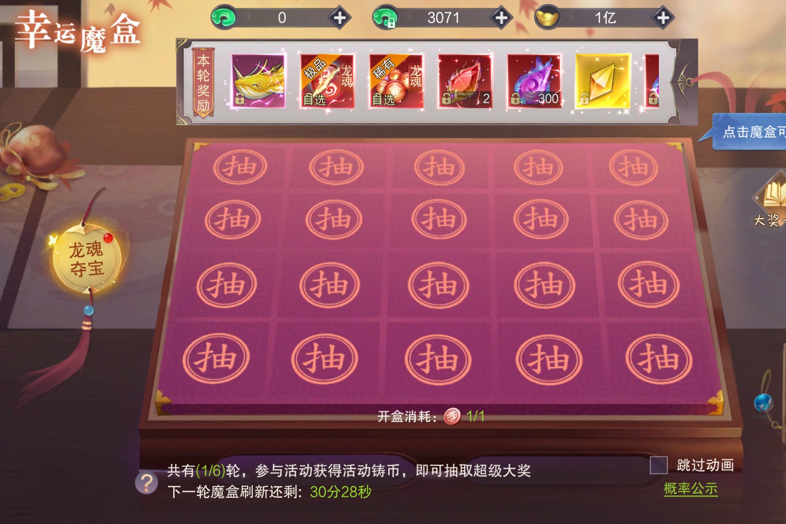 幸运魔盒 作者:单子 发布日期:2026年03月22日 00:53 参与龙魂夺宝,开启幸运魔盒,超多奖励任你选,大奖有金熙灵鲲,激活战力暴涨,还有各类龙魂、精华等珍稀道具,只要参与主题活动获取铸币,抽完本轮开启下轮,抽取还能得积分兑换好礼。 全部评论 0 最新 最热 推荐游戏 查看更多 > 幻影龙城 明星兄弟助阵,爆率无限!一起开启传奇新篇! 传奇 挂机 逍遥志 高福利魔幻送返利卷!坐骑免费领 魔幻 挂机 圣物英雄 正版火影吾之忍道,这又是谁的热血青春! 回合 卡牌 梦幻甬城 魔幻界已疯,神器跟不要钱一样乱爆! 魔幻 挂机 铁血荣耀-0.1折 0.1折超爽热血打金复古版 0.1折 魔幻 疯狂邻居 免费10000抽!千套绝美时装开启甜蜜爱恋! 二次元 挂机 今日热榜
