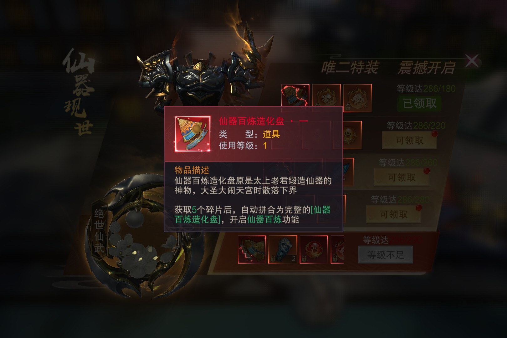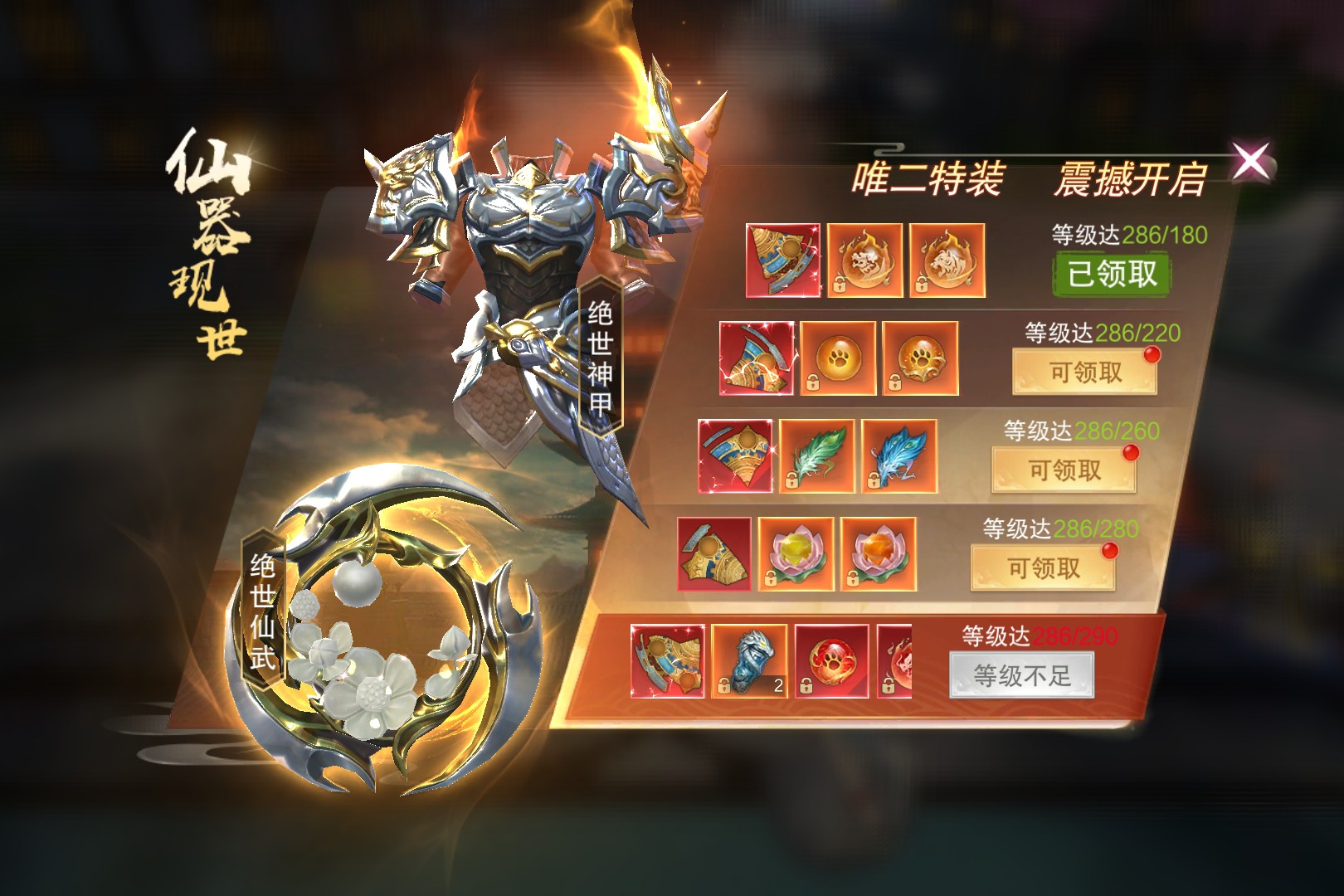 仙器现世 作者:单子 发布日期:2026年03月25日 08:52 绝世神甲与绝世仙武两大特装震撼登场,为玩家带来战力飙升的契机。画面中,金属质感的神甲流光溢彩,仙武法宝设计精巧,尽显仙器的不凡品质。活动以等级为阶梯,玩家等级达286/180时可领取首档奖励,后续还有220、260、280等多个等级节点的丰厚福利。 全部评论 0 最新 最热 推荐游戏 查看更多 > 疯狂邻居 免费10000抽!千套绝美时装开启甜蜜爱恋! 二次元 挂机 梦幻甬城 魔幻界已疯,神器跟不要钱一样乱爆! 魔幻 挂机 圣物英雄 正版火影吾之忍道,这又是谁的热血青春! 回合 卡牌 逍遥志 高福利魔幻送返利卷!坐骑免费领 魔幻 挂机 铁血荣耀-0.1折 0.1折超爽热血打金复古版 0.1折 魔幻 幻影龙城 明星兄弟助阵,爆率无限!一起开启传奇新篇! 传奇 挂机 今日热榜