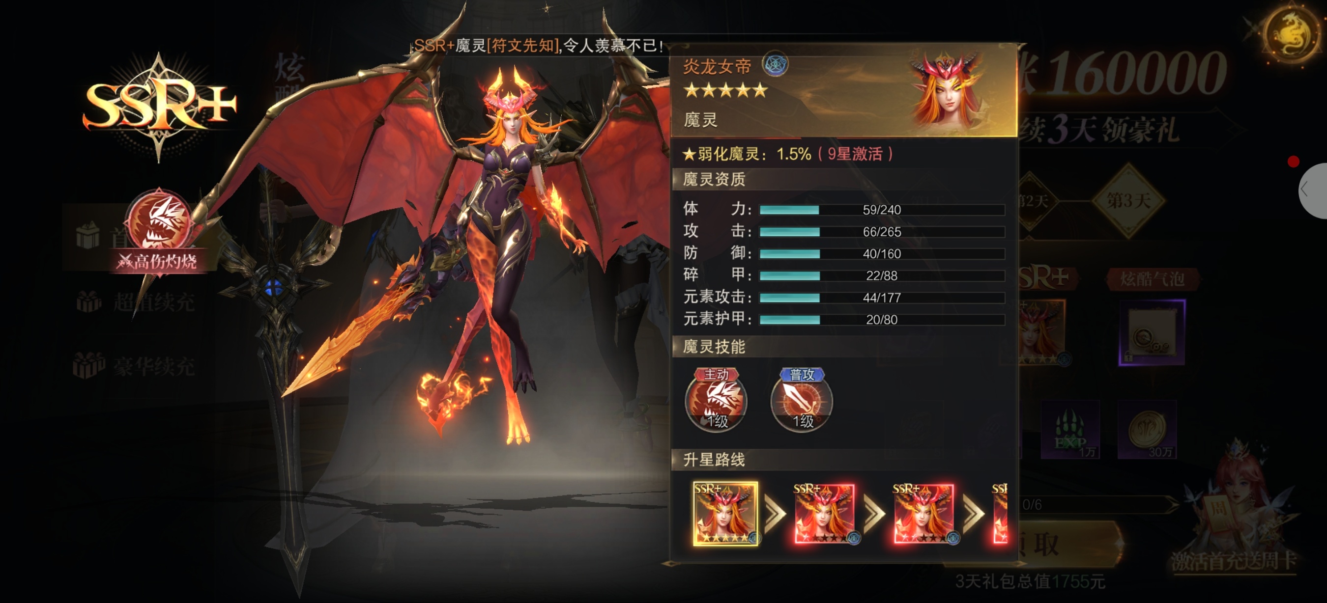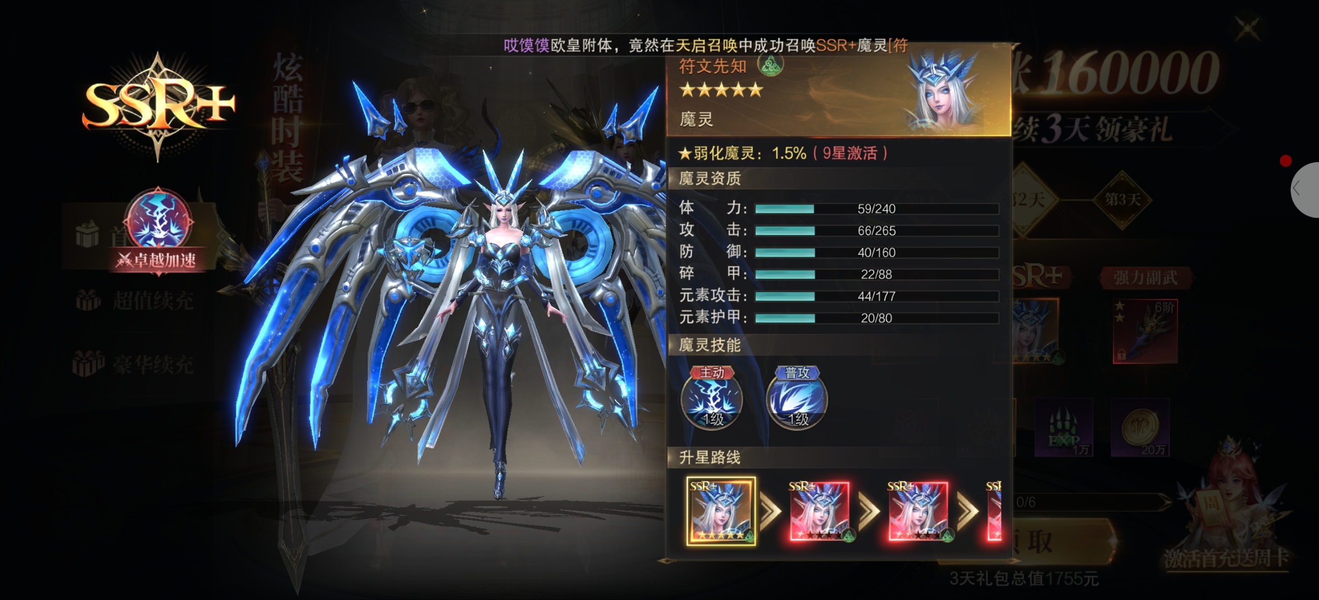 这些SSR+魔灵不仅拥有华丽的外观,更藏着惊人的成长潜力——满星资质下,体力、攻击等属性将突破极限,9星解锁的弱化魔灵被动更是能在团战中精准压制对手。从首充即得的光辉女郎,到后期解锁的符文先知与炎龙女帝,每一位魔灵都能成为冒险者并肩作战的伙伴,助力战力暴涨16万,在魔幻大陆上书写属于自己的传奇。