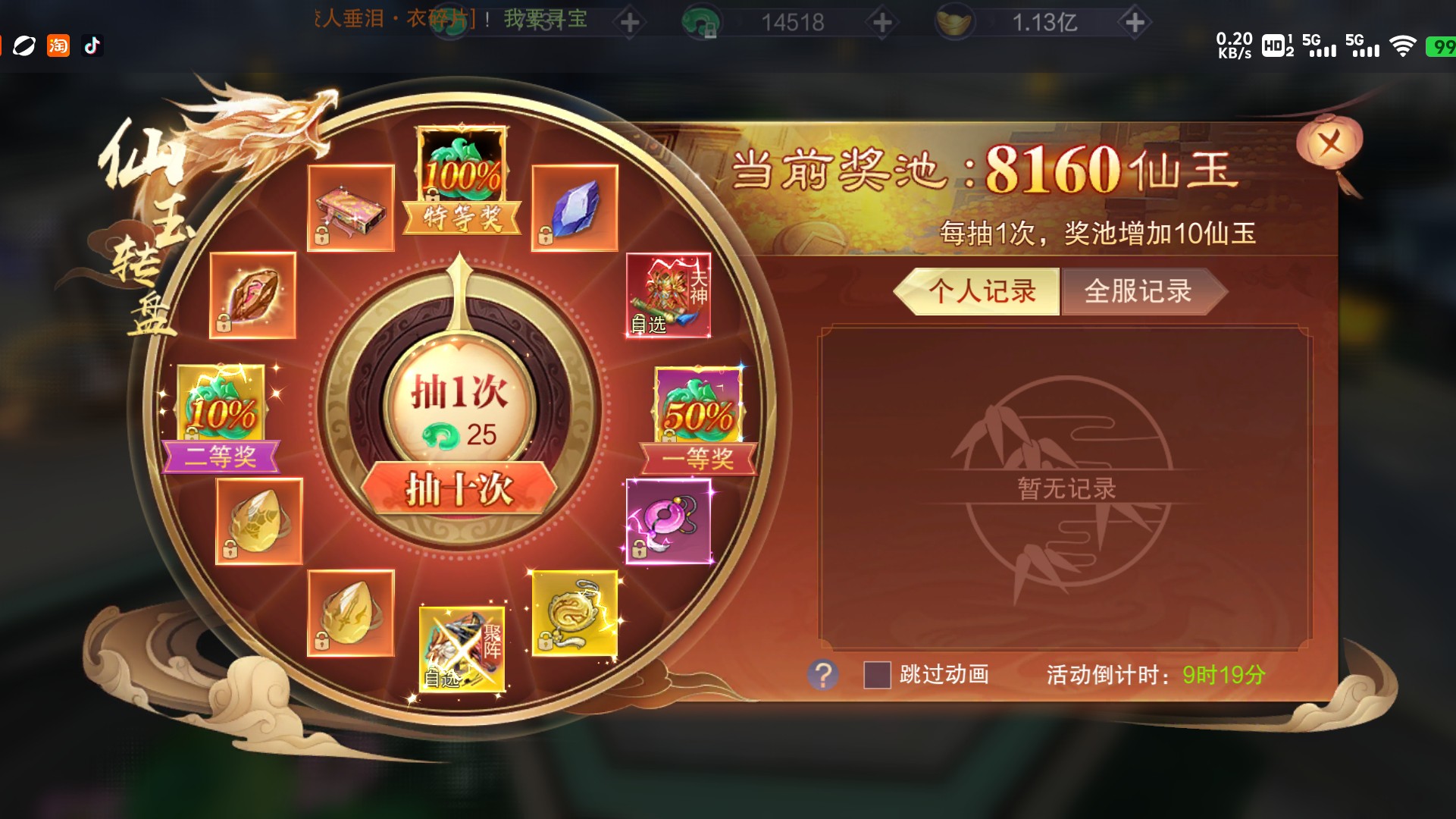 2. 不要忽略奖池瓜分:抽奖次数不仅拿道具,还能拿仙玉分红,所以抽之前算好占比,避免抽多了回本少