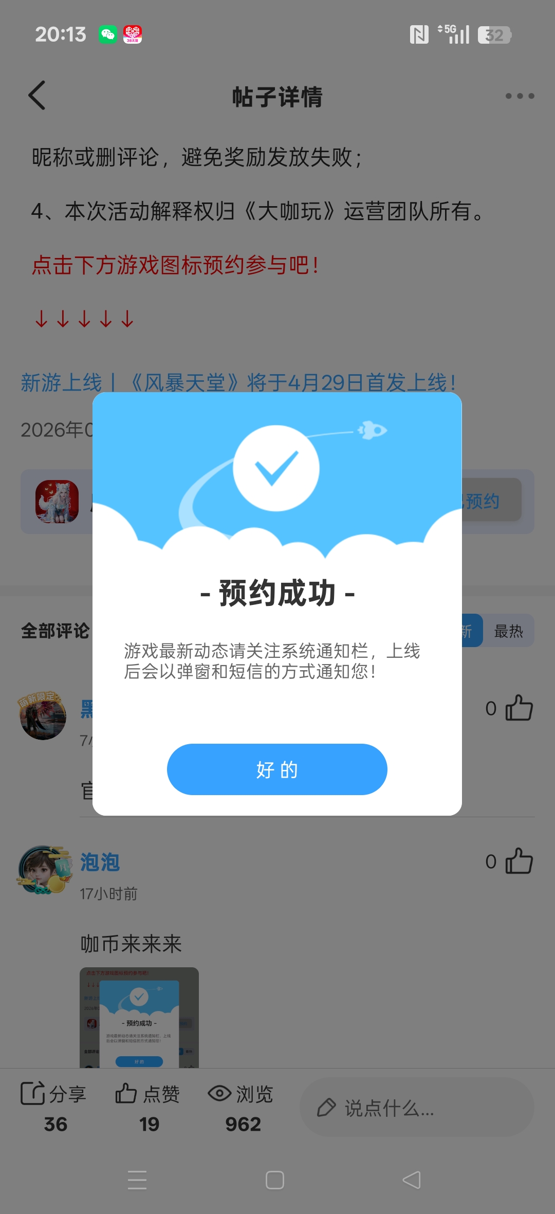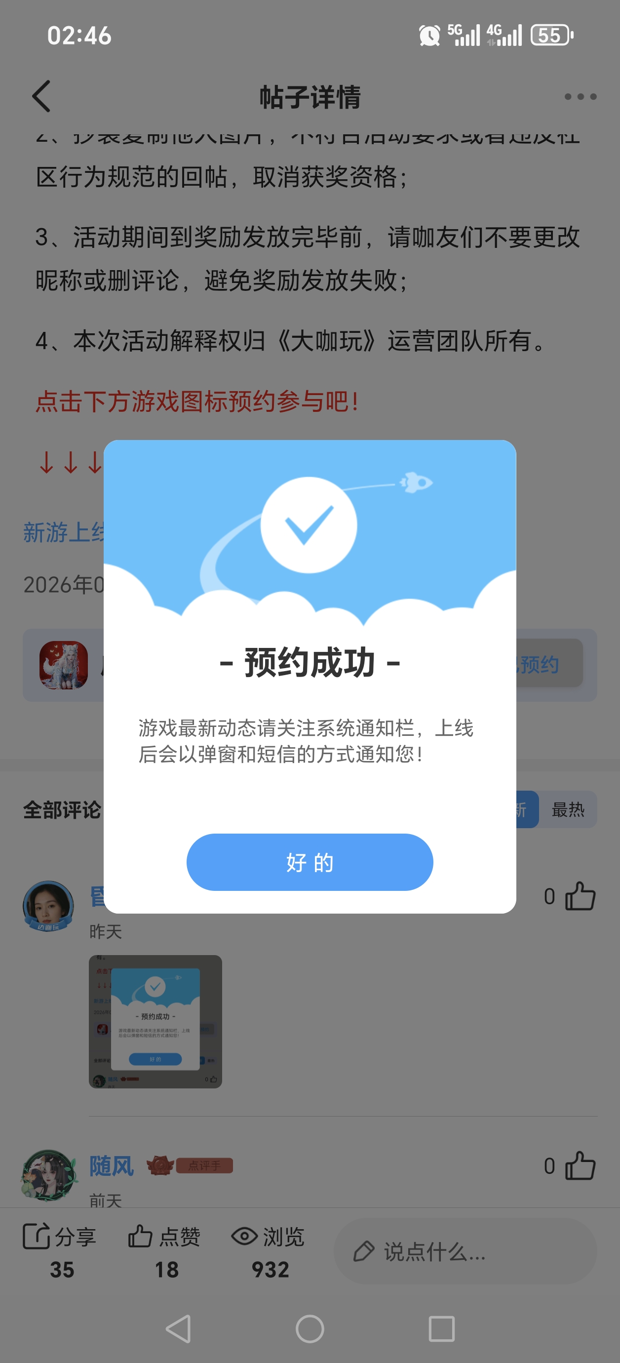在本帖评论区分享预约游戏或首发后体验游戏截图或五星好评截图、评论,即可参与~