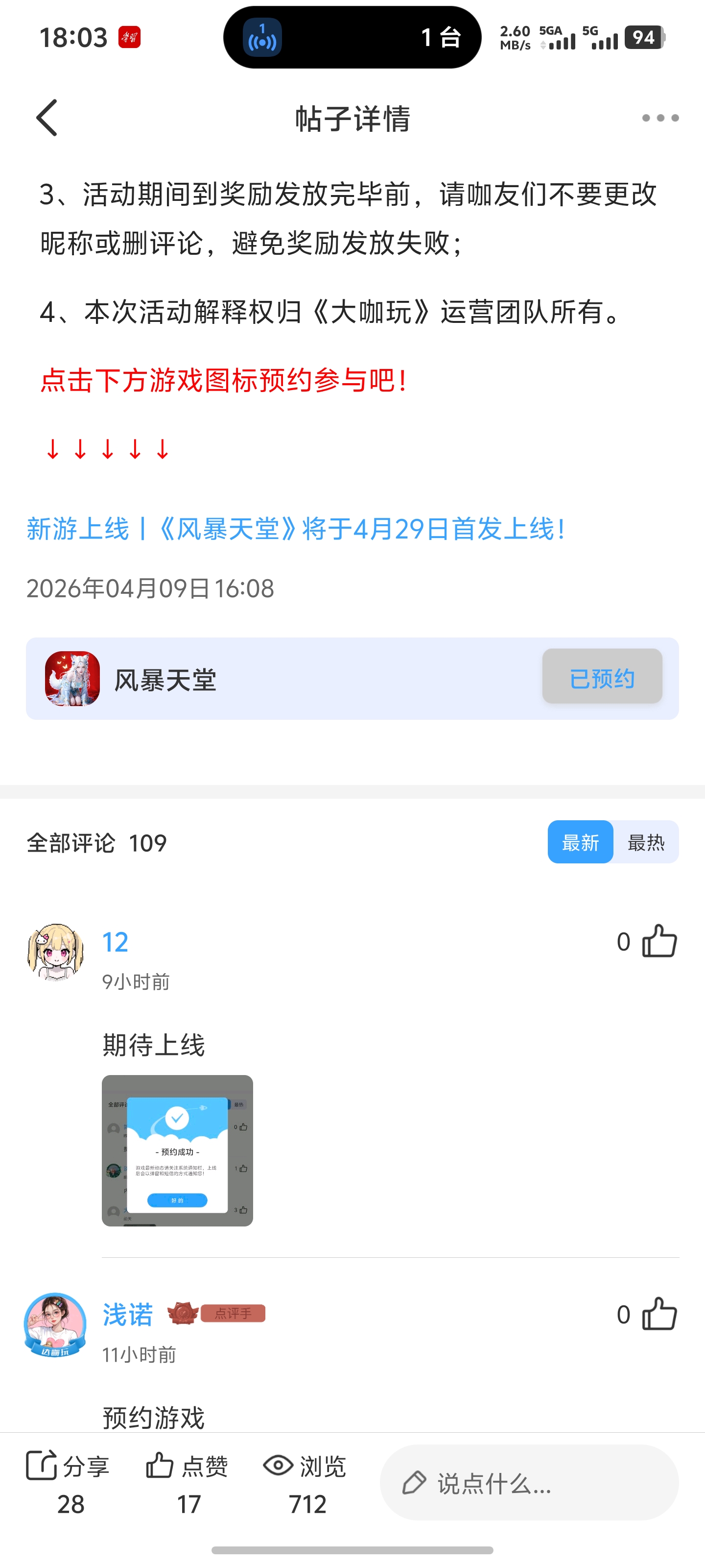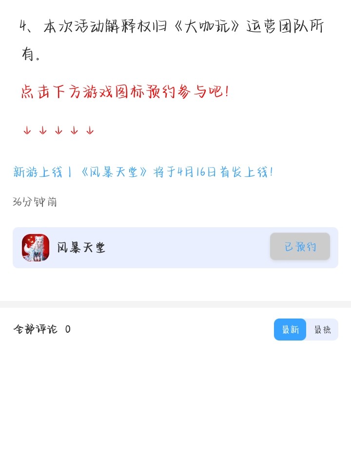 【获奖名单】《风暴天堂》即将首发上线,晒预约赢好礼!