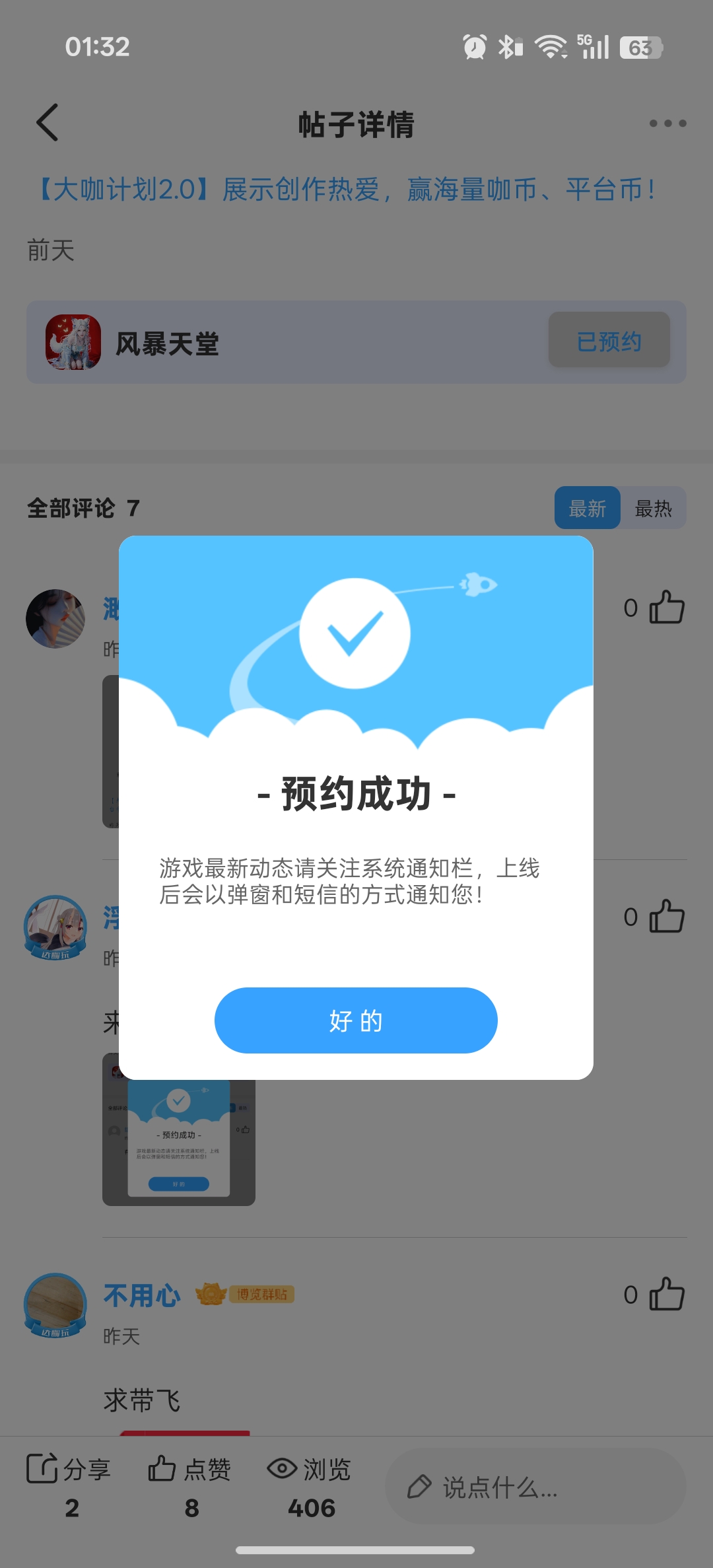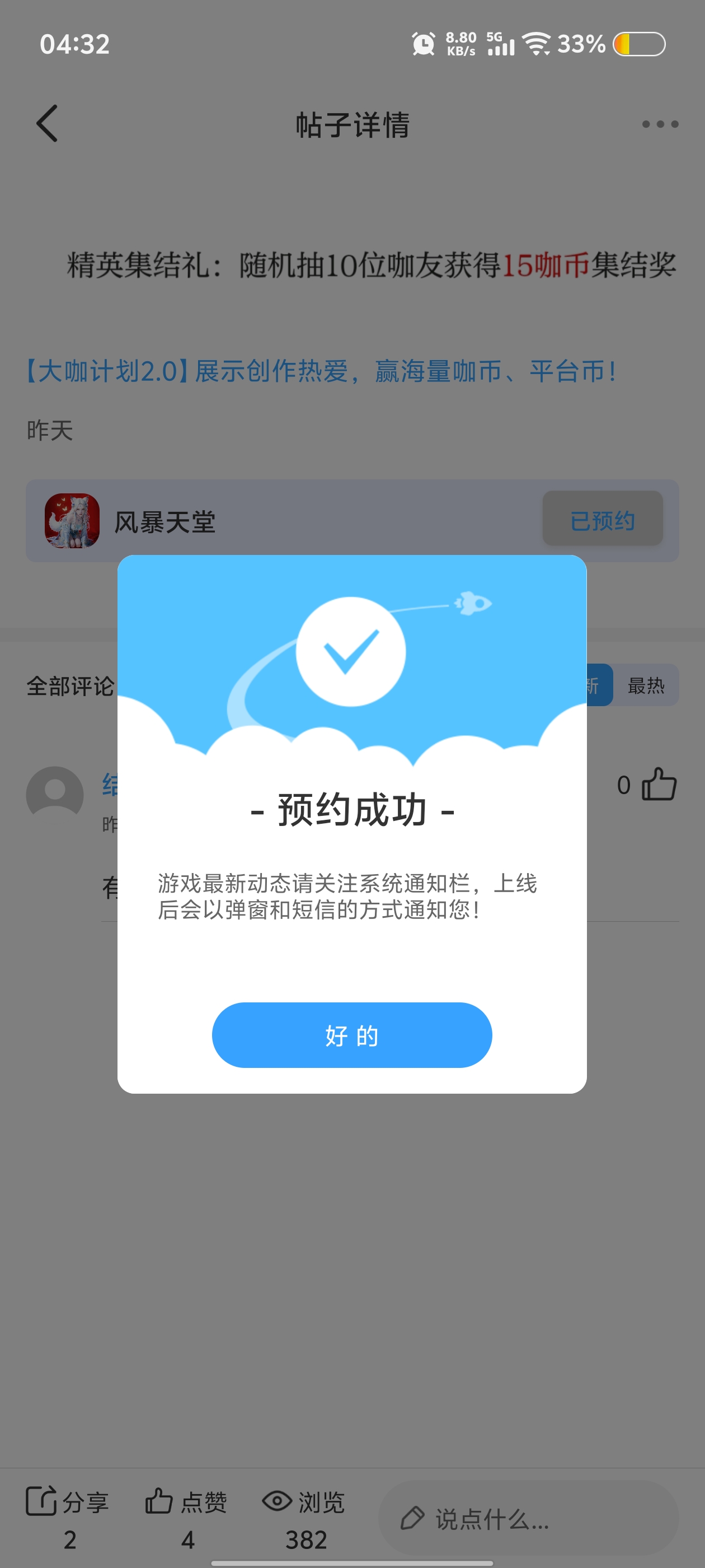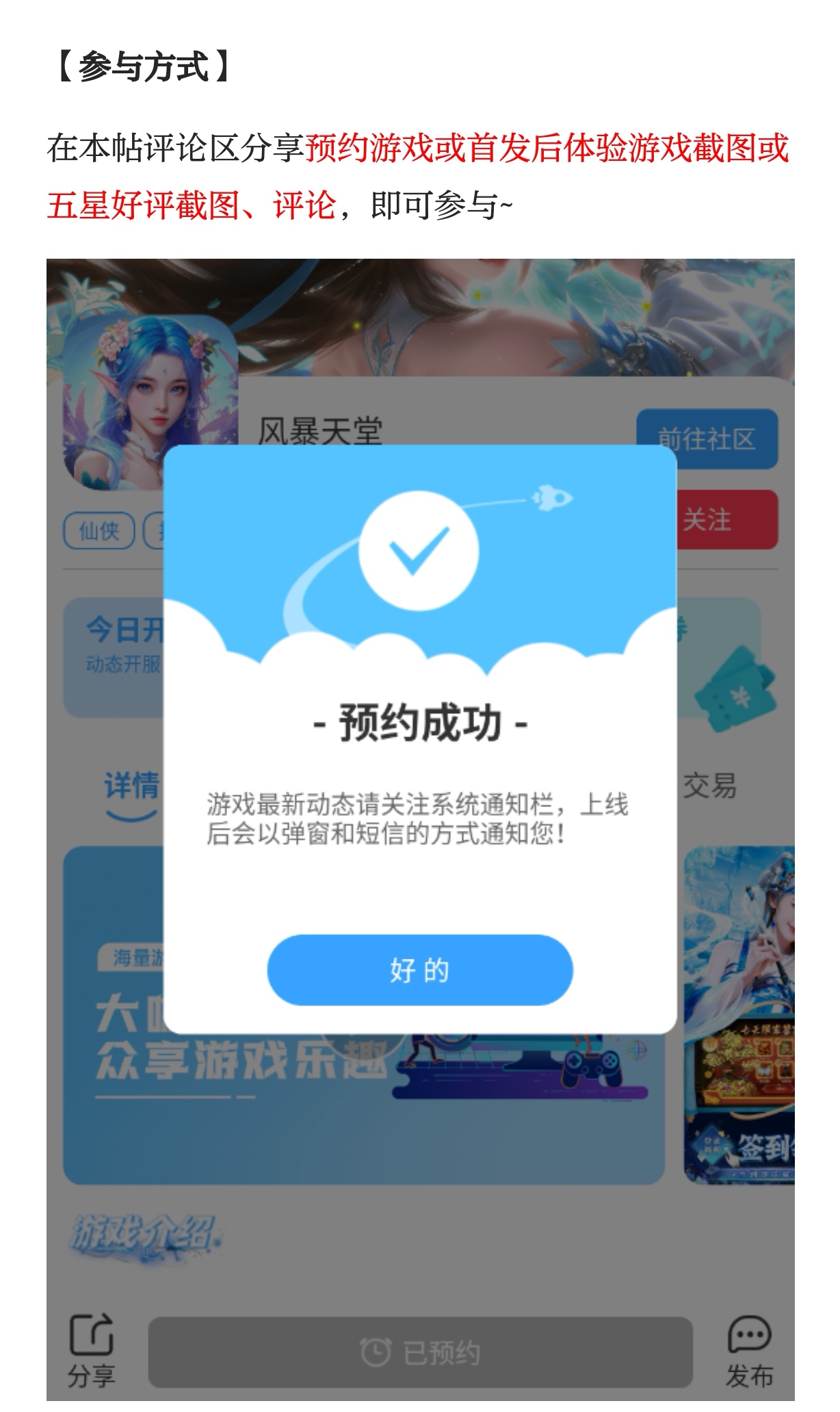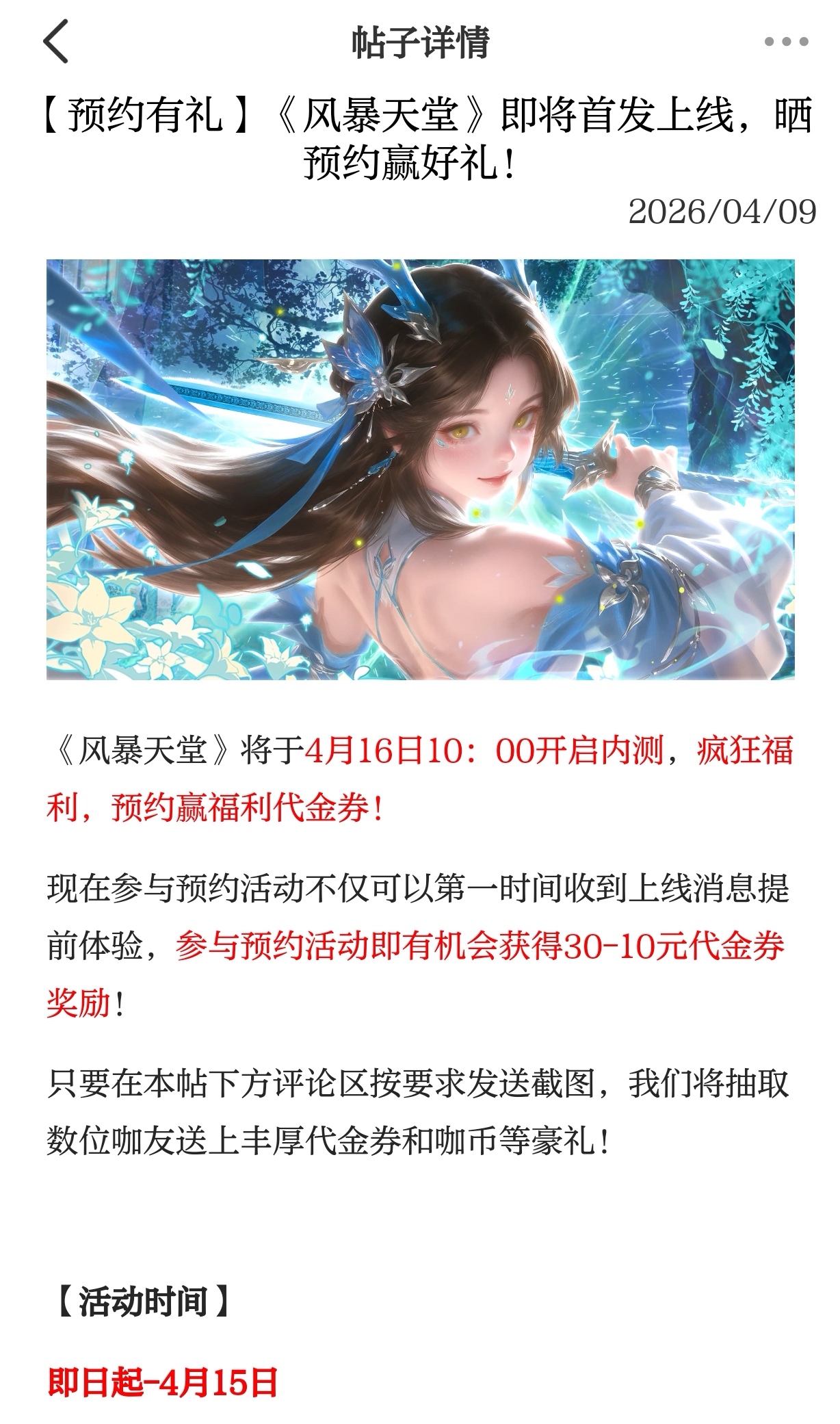 活动时间仅剩最后几天,截止到4月15日,错过再等N久!赶紧点击预约按钮完成预约,把预约截图晒到评论区,和万千仙友一起赴这场仙侠之约,抢占内测先机,赢取专属福利!风暴已至,天堂由你,速来参与!