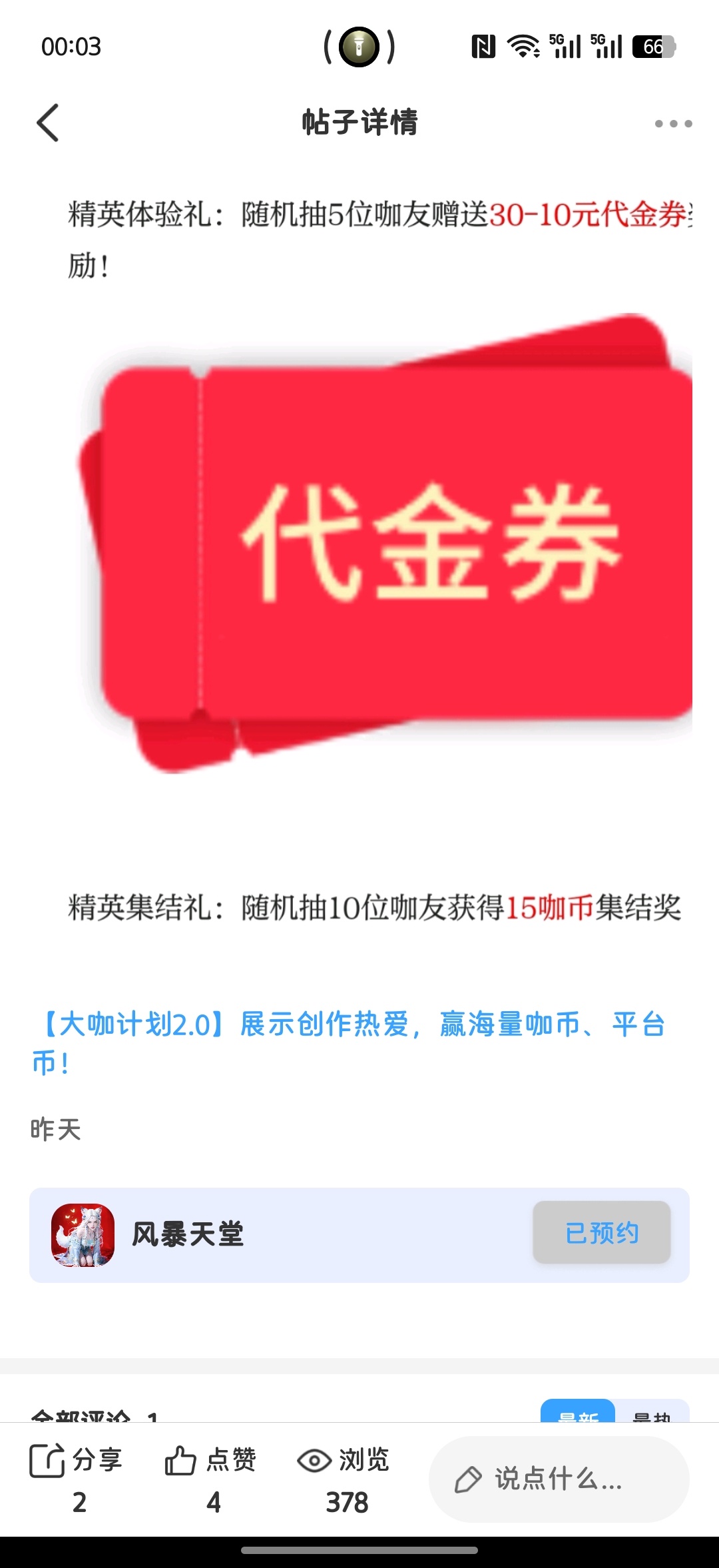 现在参与预约,不仅能第一时间接收上线通知、抢先体验内测资格,还能参与抽奖赢好礼!活动期间在评论区分享预约截图,就有机会抽中30-10元代金券(随机5位)、15咖币(随机10位),福利直接拉满!
