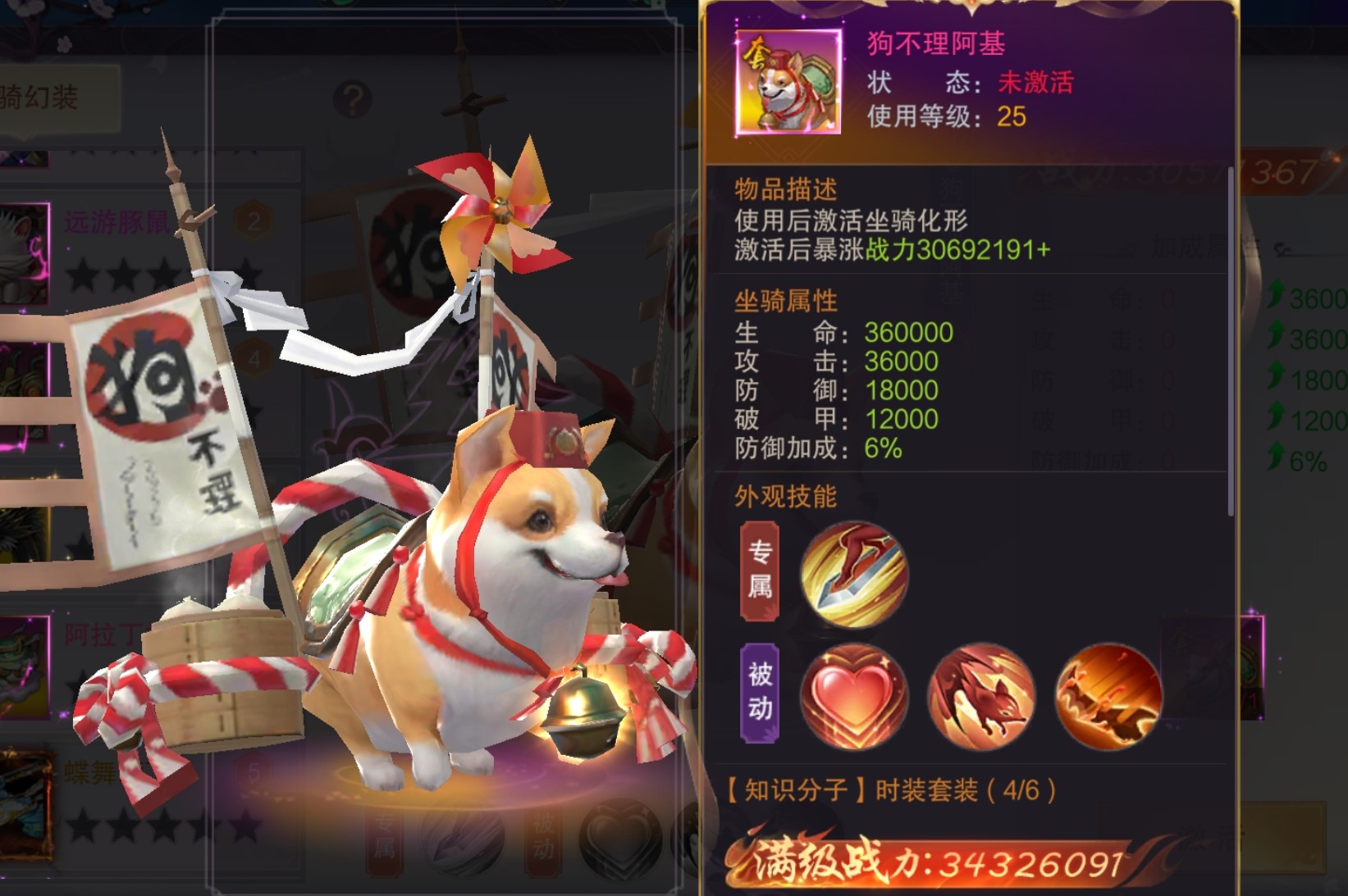 一只背着蒸笼和插着狗不理旗帜的柯基坐骑,软萌软萌的