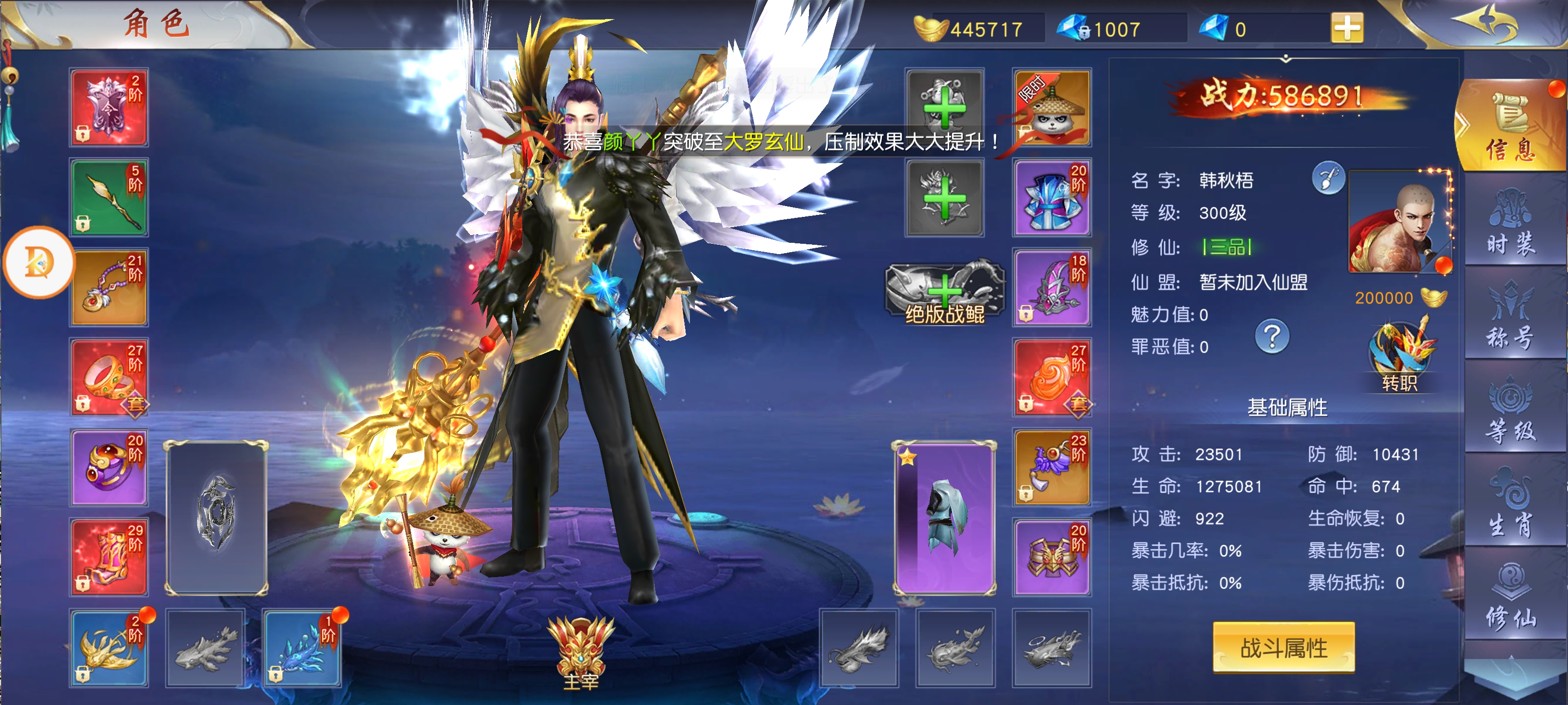 3、战力榜三奖励:羽翼·棉花云翼*1、29阶红装自选宝箱*1、神装钥匙*20、6级稀有水晶自选*1