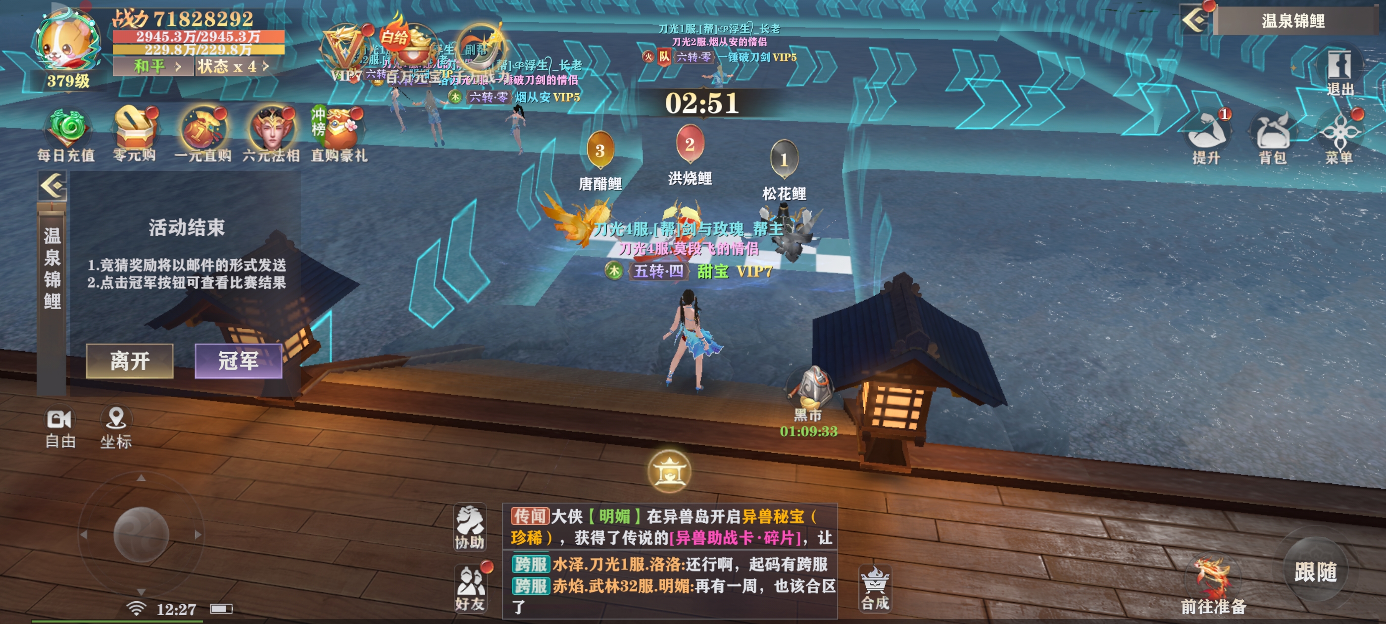 家人们,咱就是说在《王者战神》里,惊喜真的是一波接一波!先是解锁了“沙盾之佑”这个技能,每隔30秒就能有流沙聚成的盾保护,关键时候还能免疫一次死亡,这安全感直接拉满,战力更是一下飙到18000000,太酷啦~+然后又去体验了温泉锦鲤活动,看着倒计时,期待感拉满,还能拿经验,在温泉边和其他玩家一起,氛围超棒!这游戏是懂怎么让我们快乐的~+有没有小伙伴也解锁了厉害技能,或者在温泉锦鲤活动里有啥有趣经历,快来聊聊~