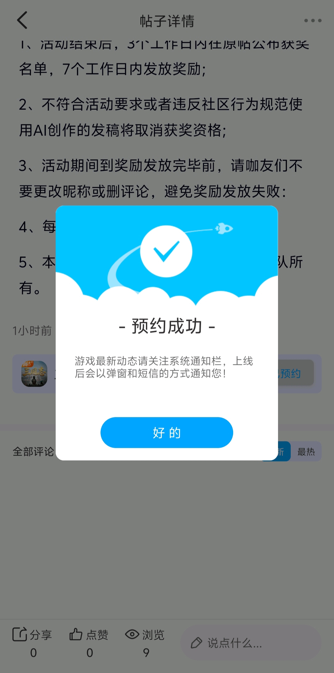 1)在本帖评论区分享预约游戏或首发后体验游戏截图或五星好评截图、评论,即可参与~