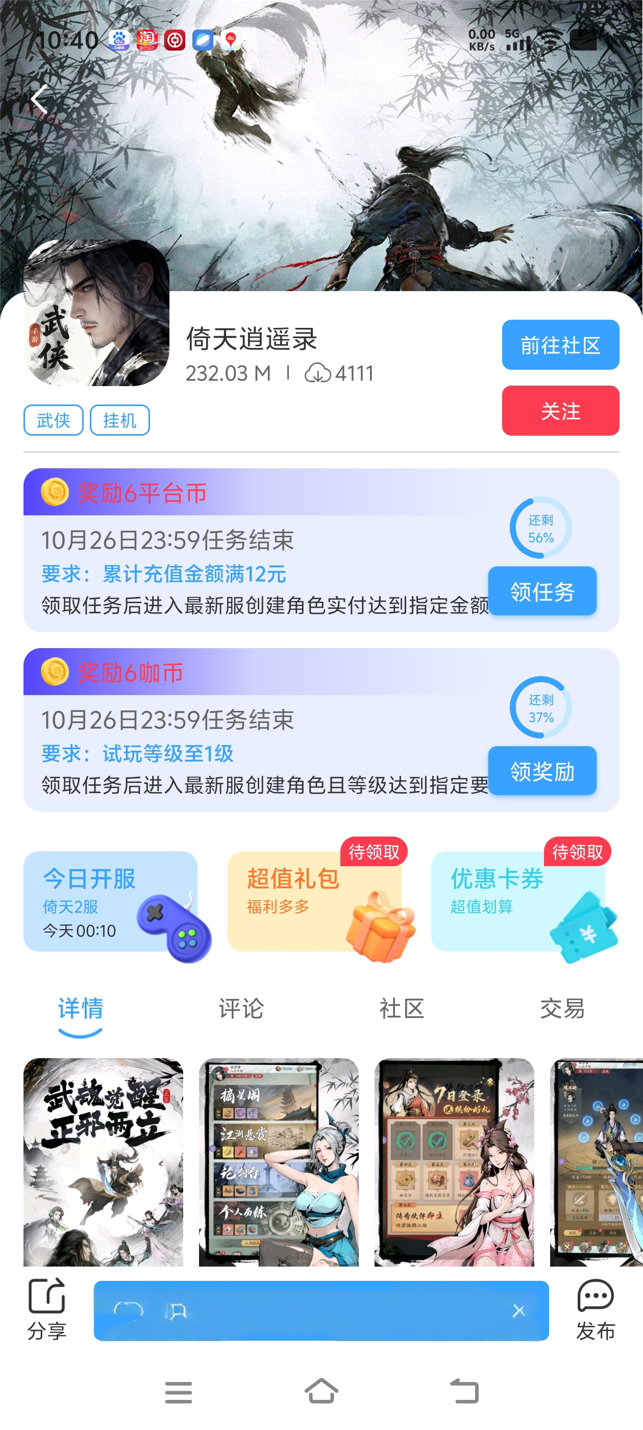 《倚天逍遥录》将于10月24日10:00震撼上线,疯狂福利,参与活动赢福利代金券!