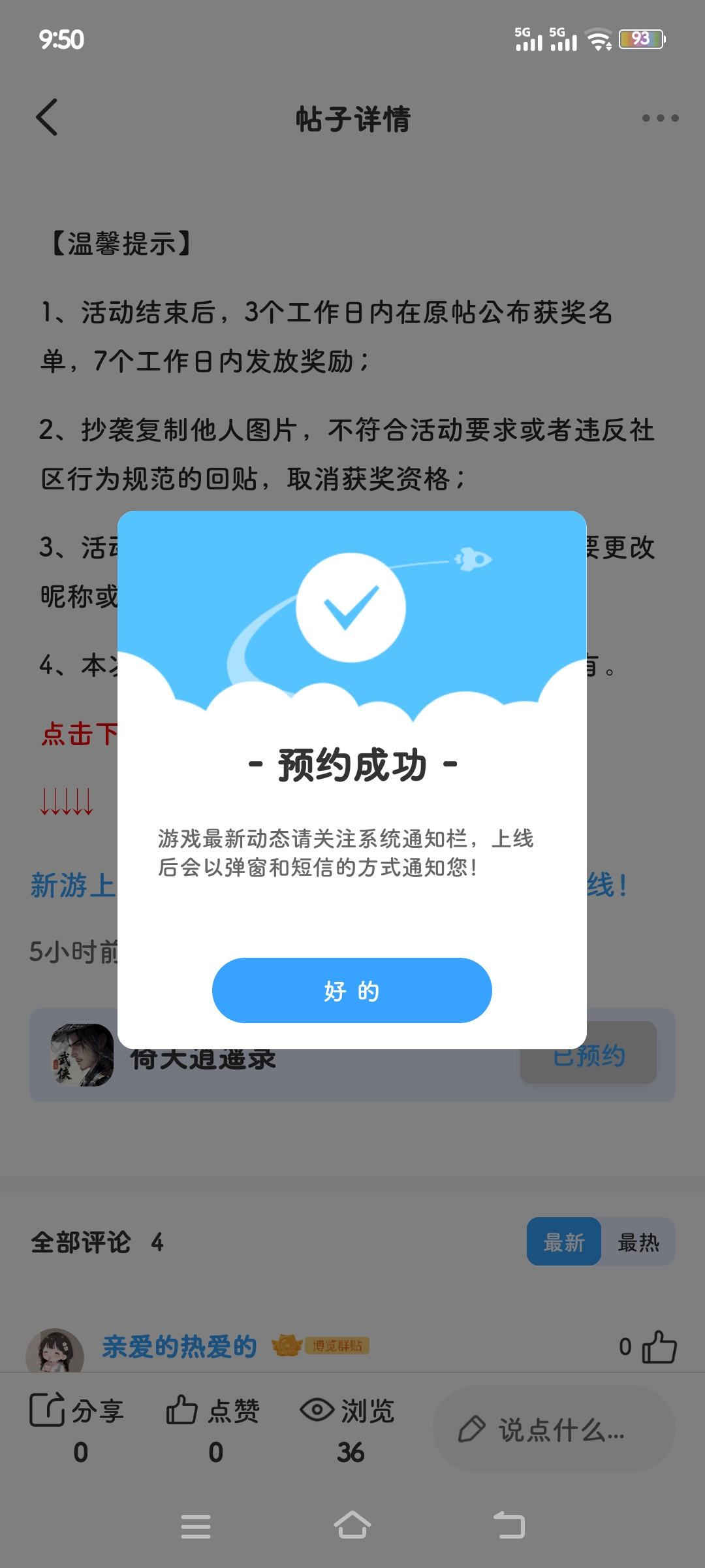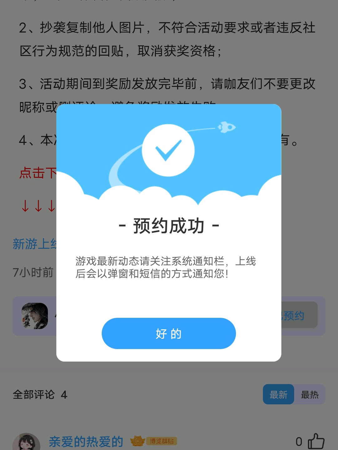 在本帖评论区分享预约游戏或上线后的五星好评截图,即可参与~