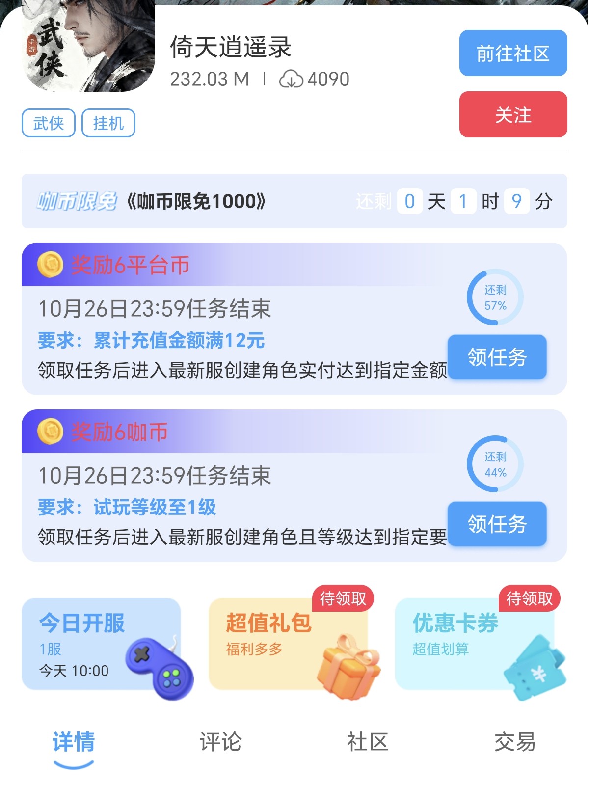 《倚天逍遥录》将于10月24日10:00震撼上线,疯狂福利,参与活动赢福利代金券!