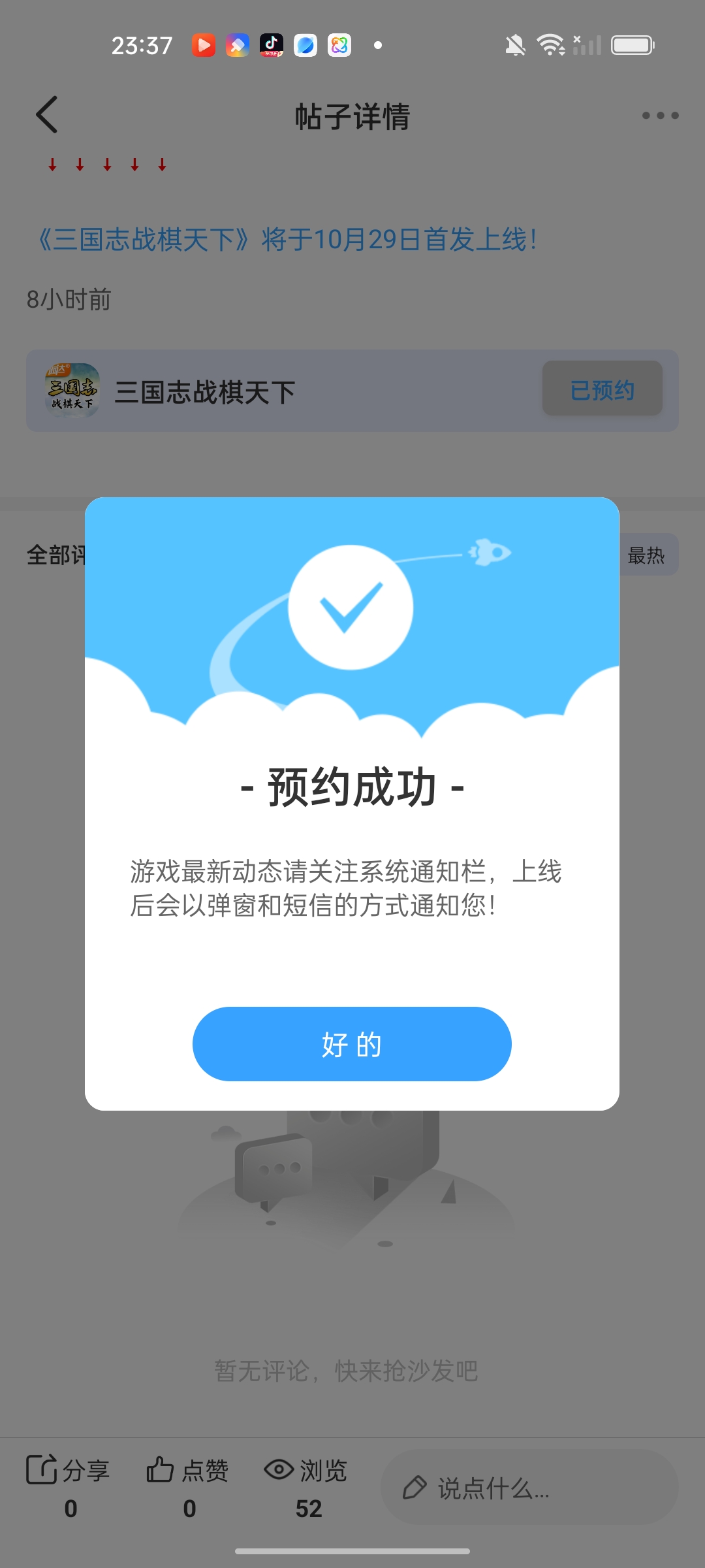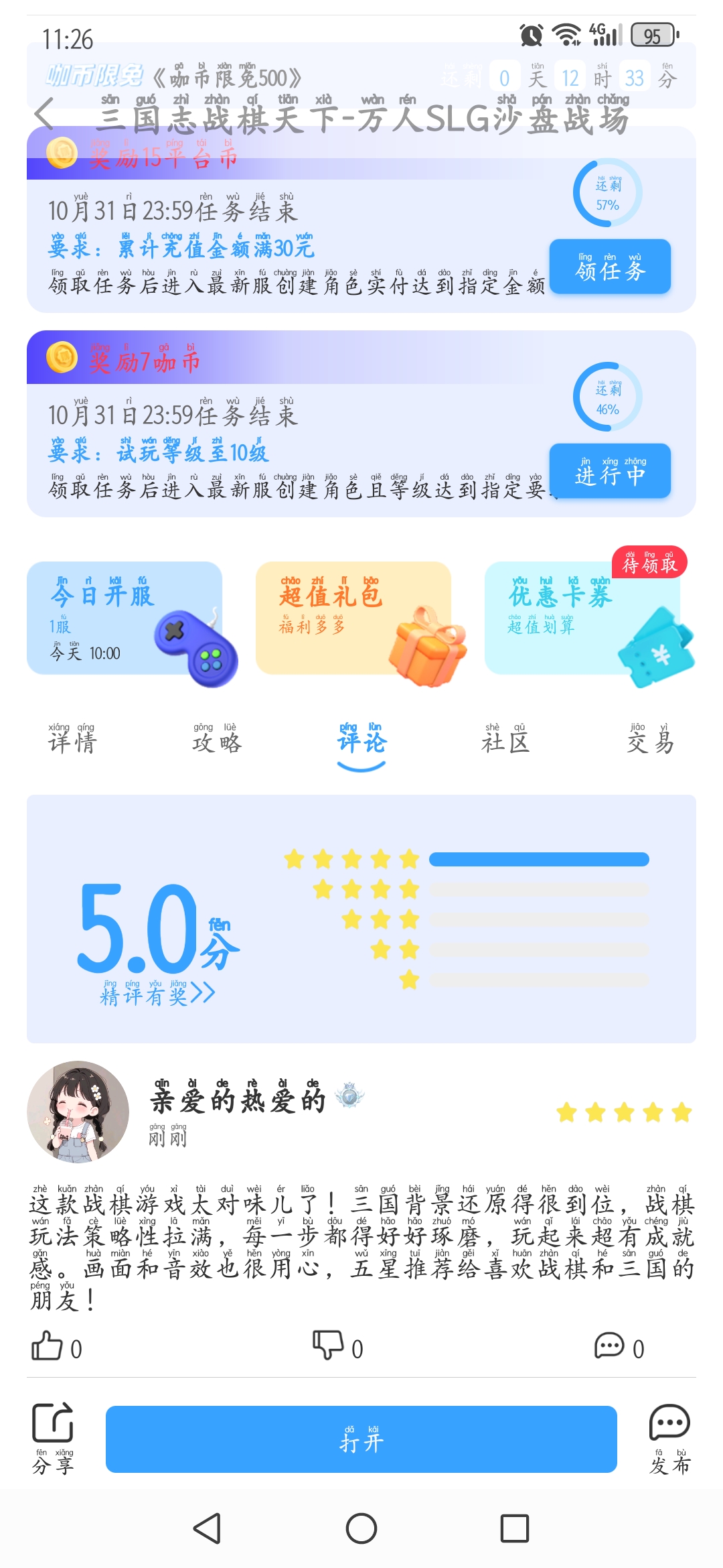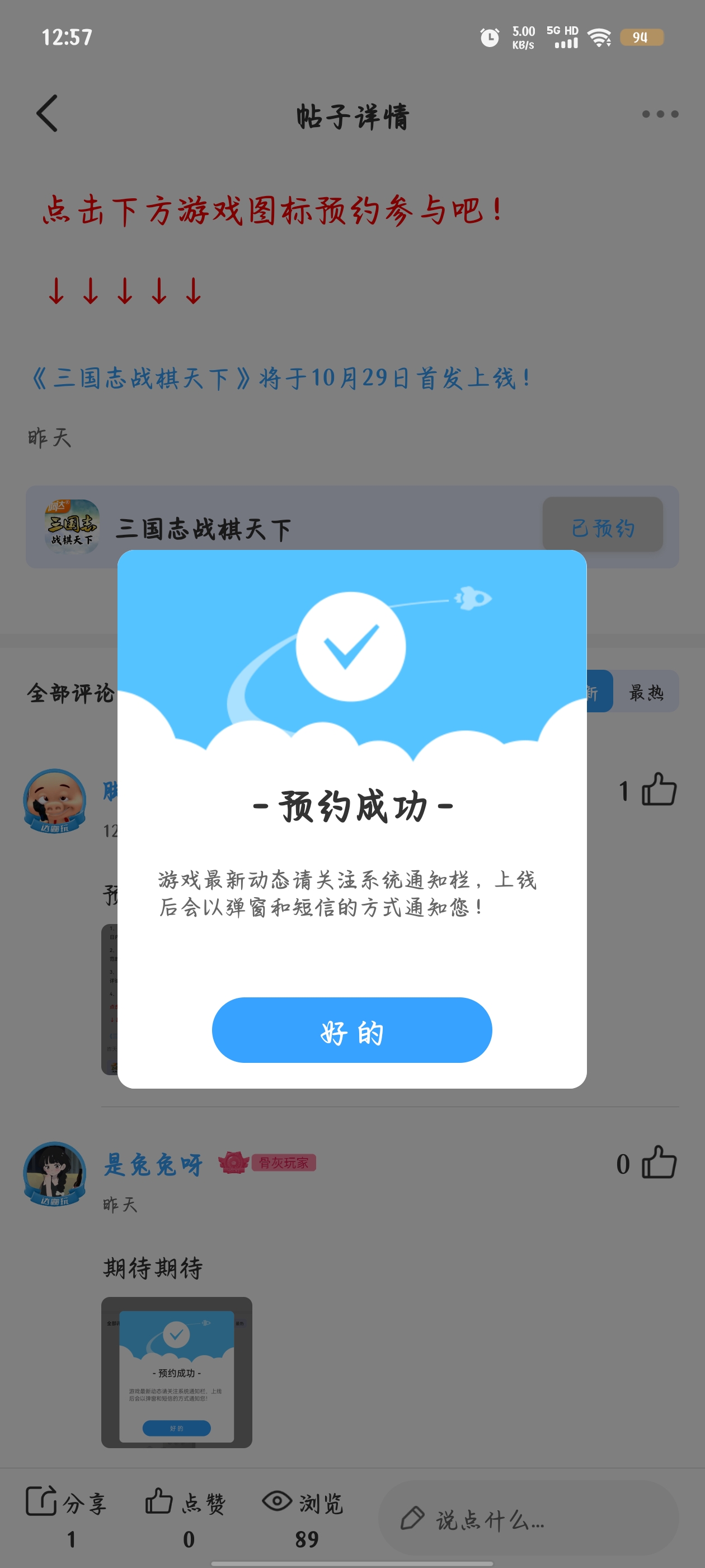 在本帖评论区分享预约游戏加首发后对《三国志战旗天下》的五星好评截图,即是成功参与~