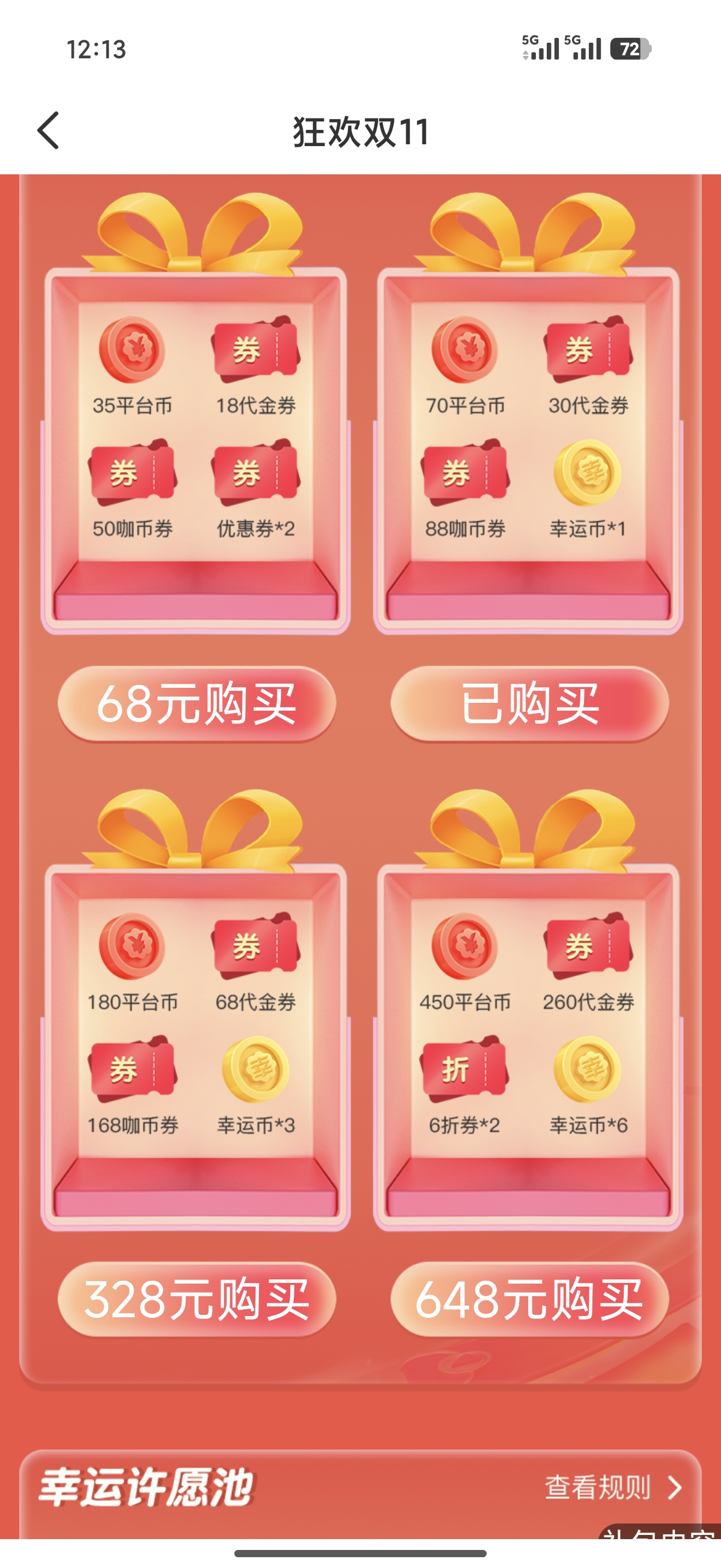 双11怎么能错过支持平台活动和抽扭蛋呢。
