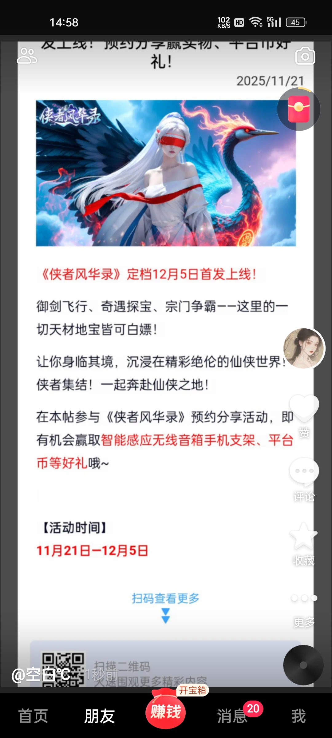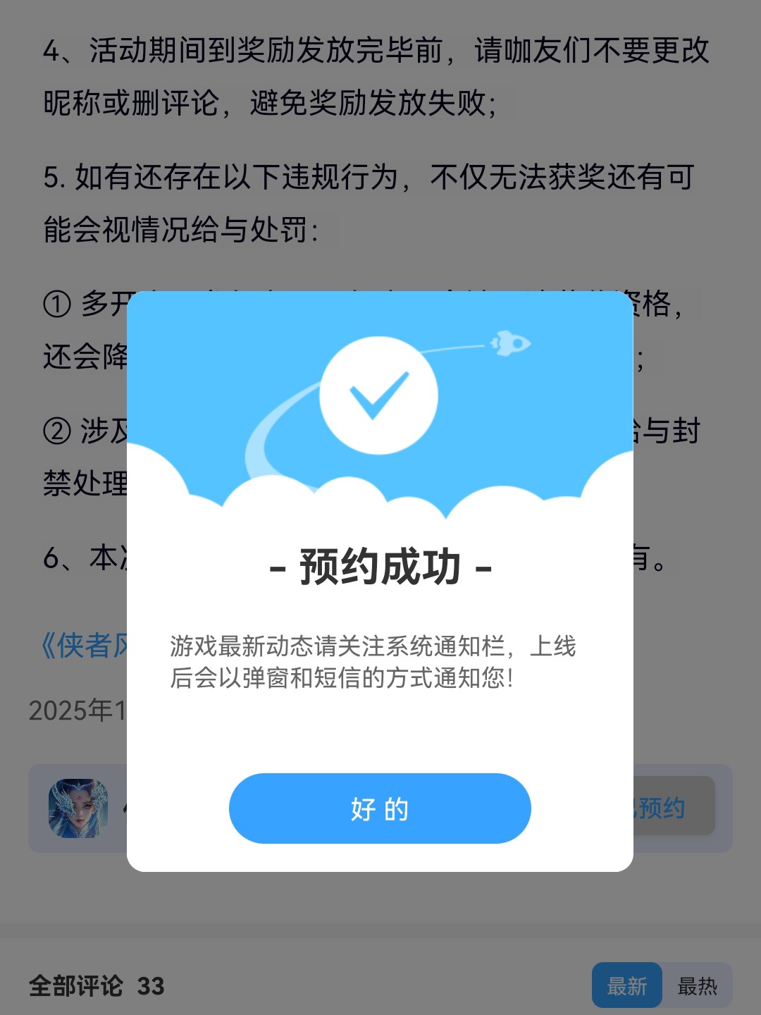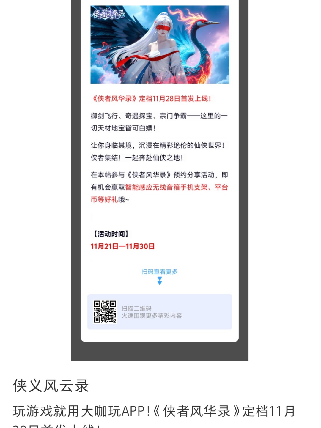 步骤1:前往预约游戏《侠者风华录》并截图。
