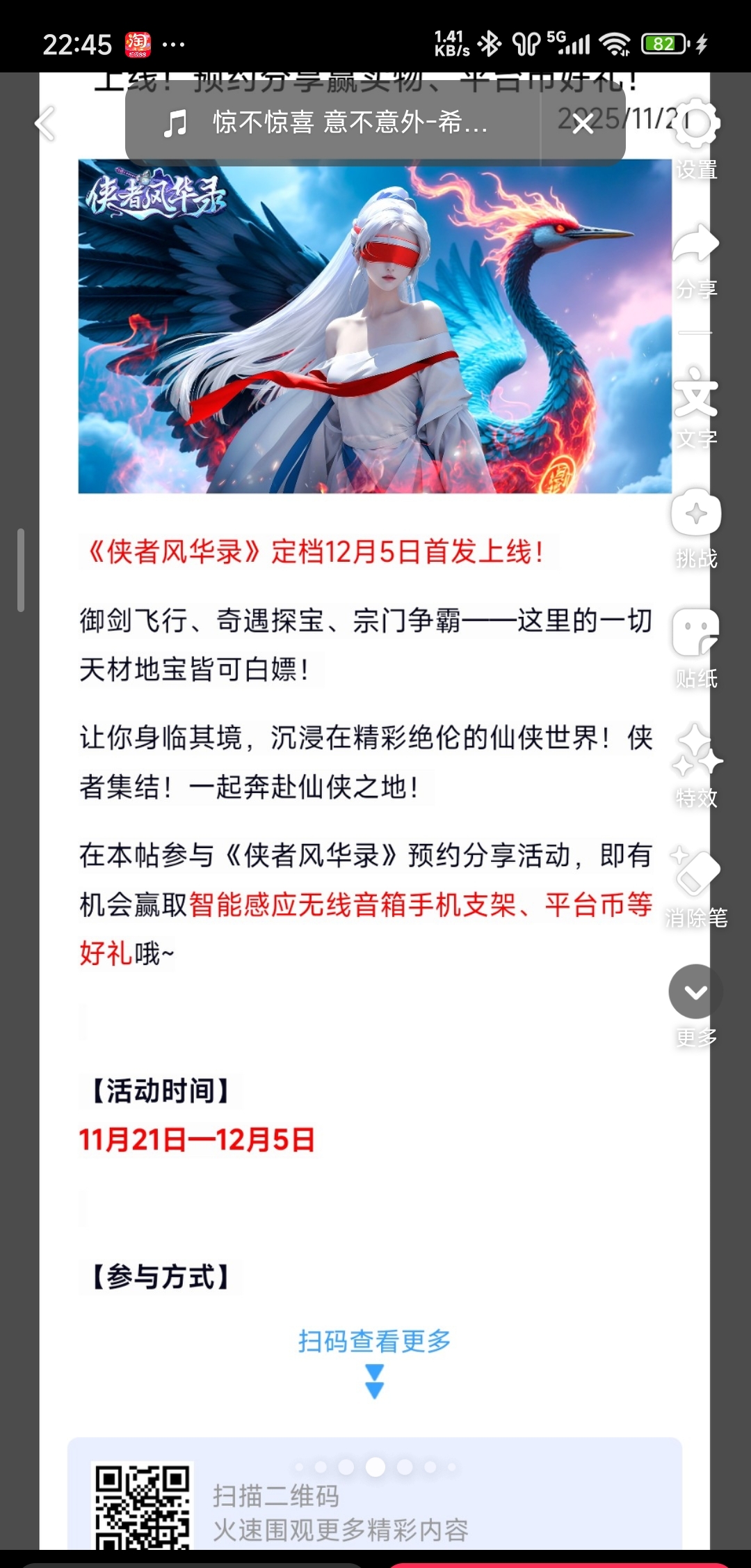 在本帖参与《侠者风华录》预约分享活动,即有机会赢取智能感应无线音箱手机支架、平台币等好礼哦~