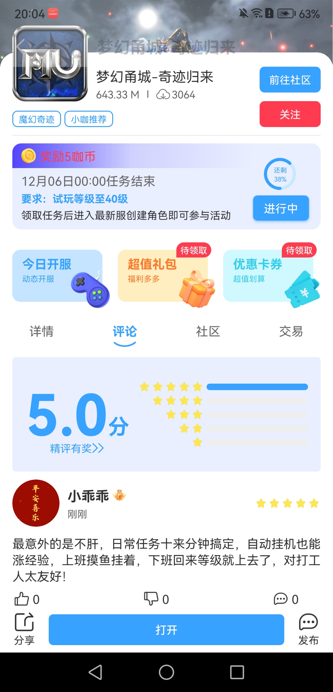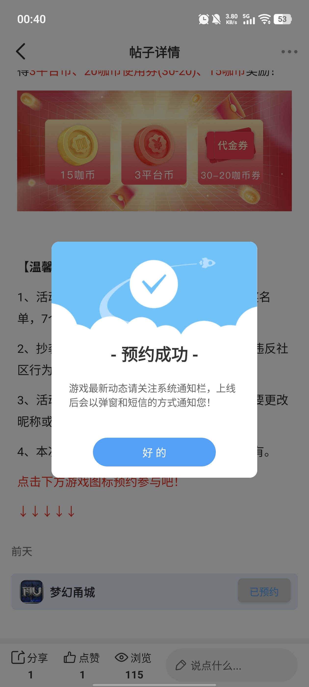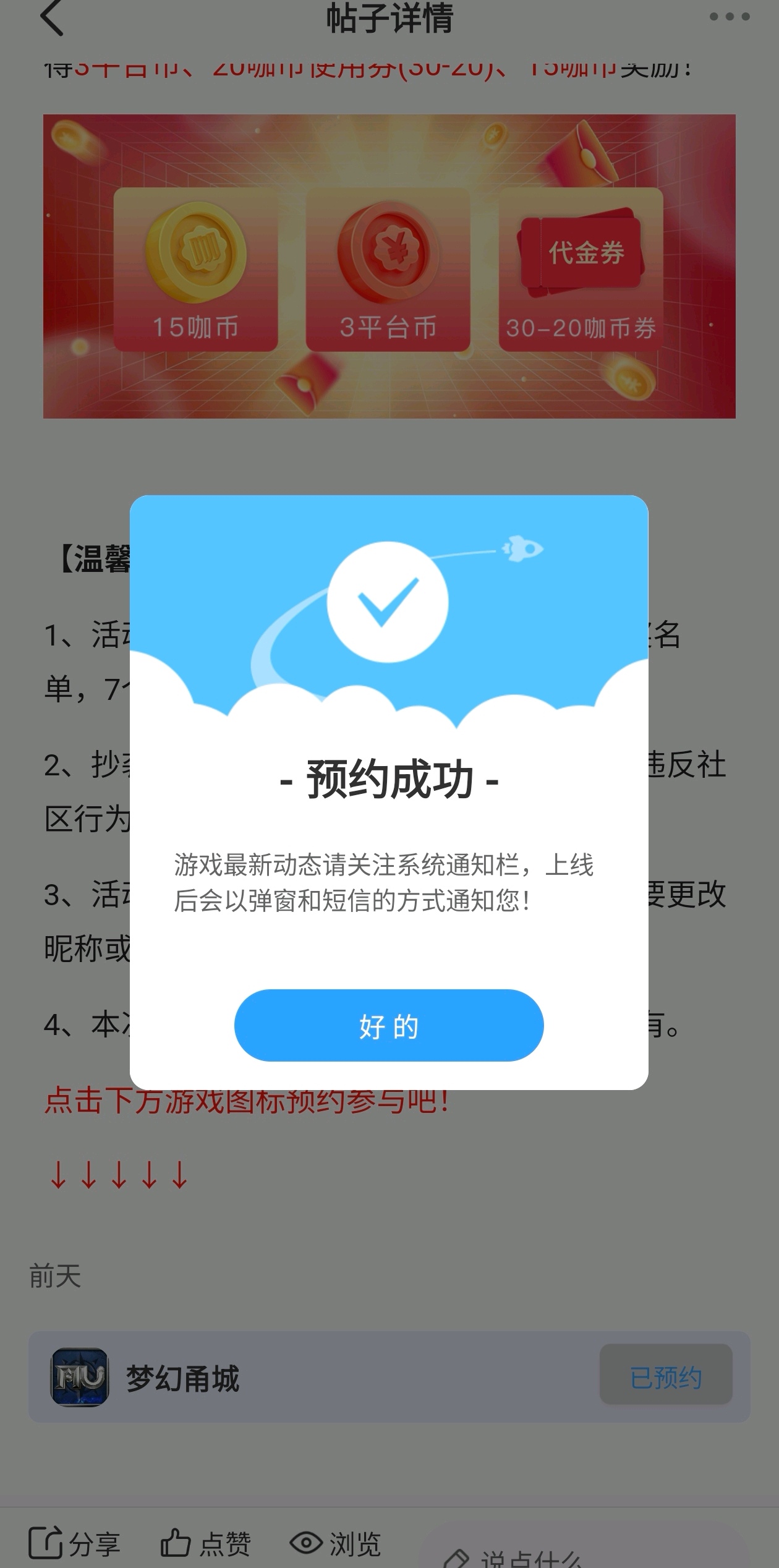 在本帖评论区分享预约游戏加首发后对《梦幻甬城》的五星好评截图,即是成功参与~
