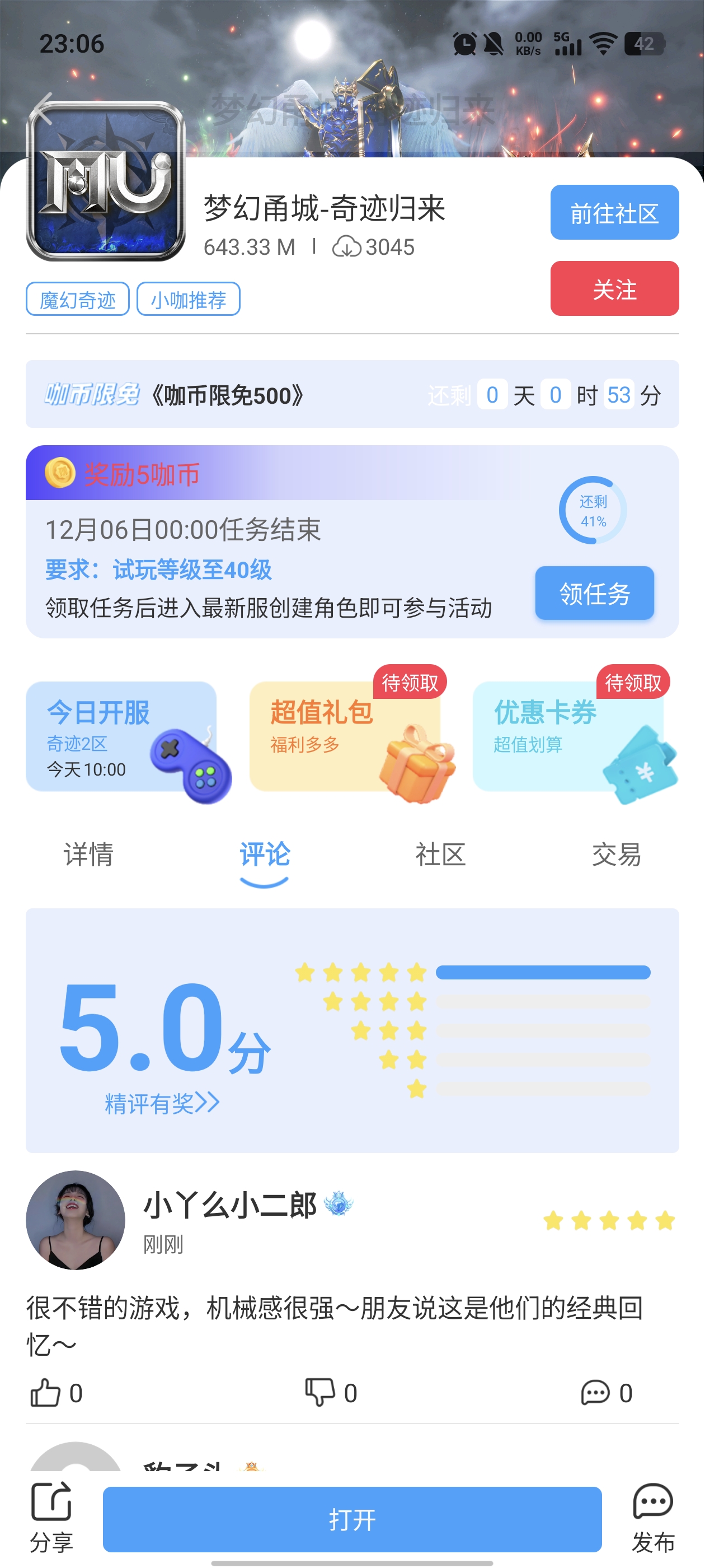 精英评分礼:符合活动要求评论中抽取15位咖友获得3平台币、20咖币使用券(30-20)、15咖币奖励!