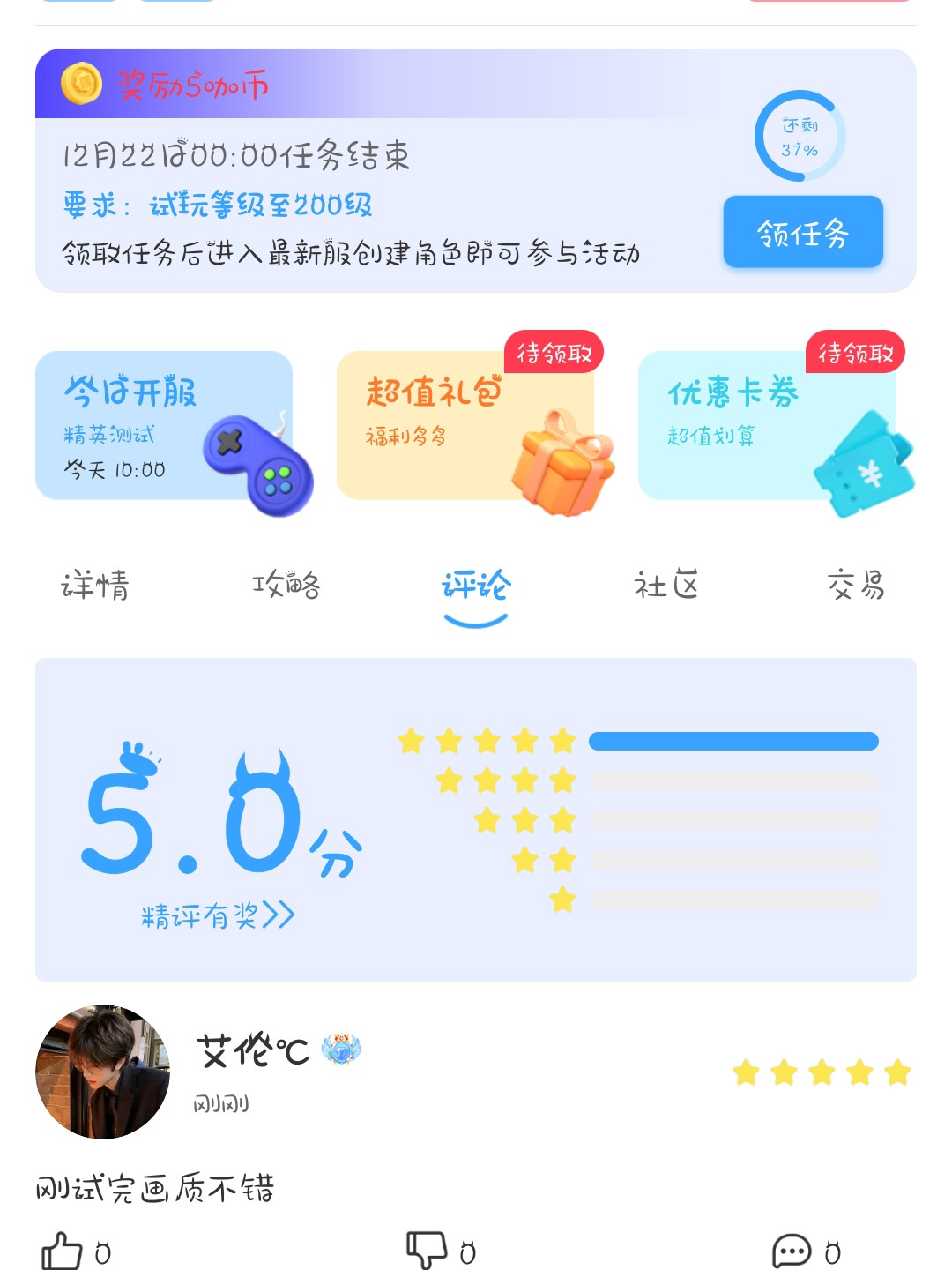 精英评价礼:符合活动要求评论中抽取10位咖友获得3平台币、20咖币使用券(30-20)、15咖币奖励!