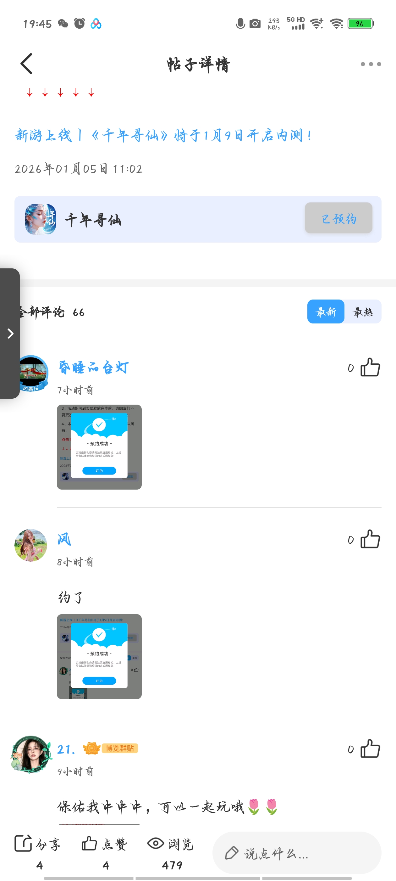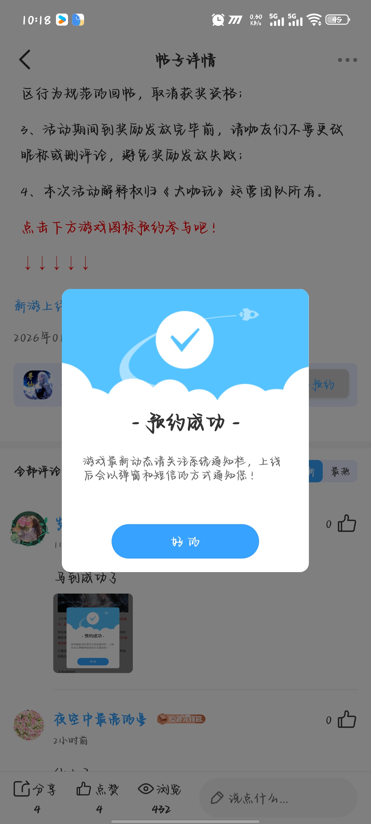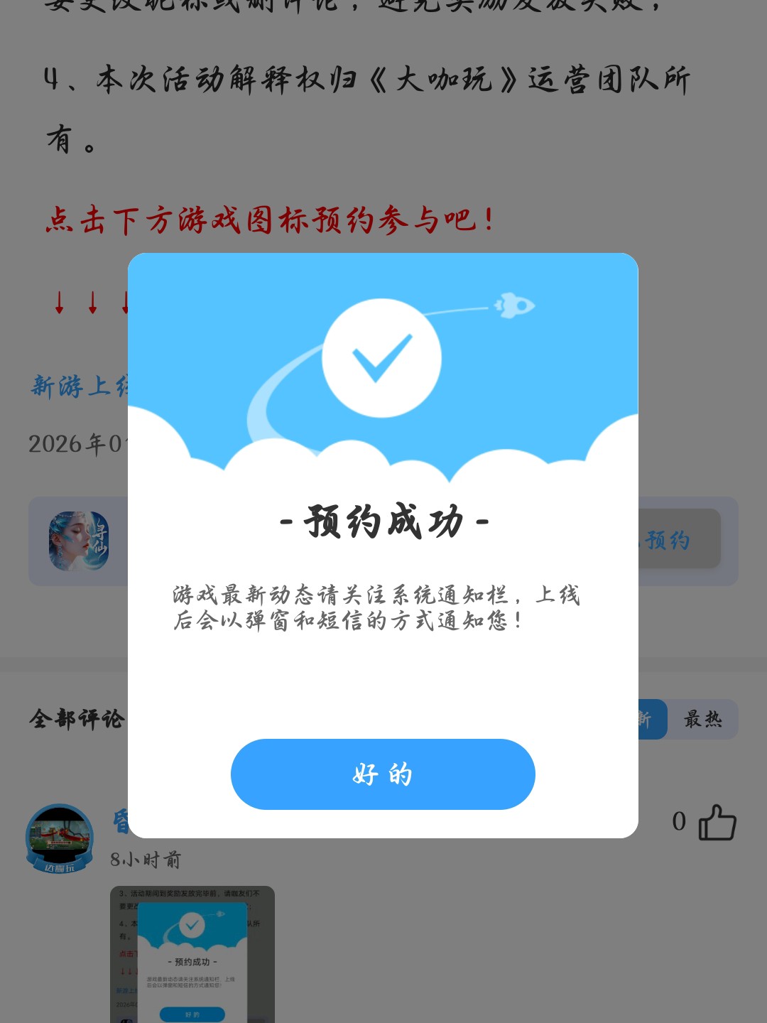 在本帖评论区分享预约游戏或首发后体验游戏截图或五星好评截图、评论,即可参与~