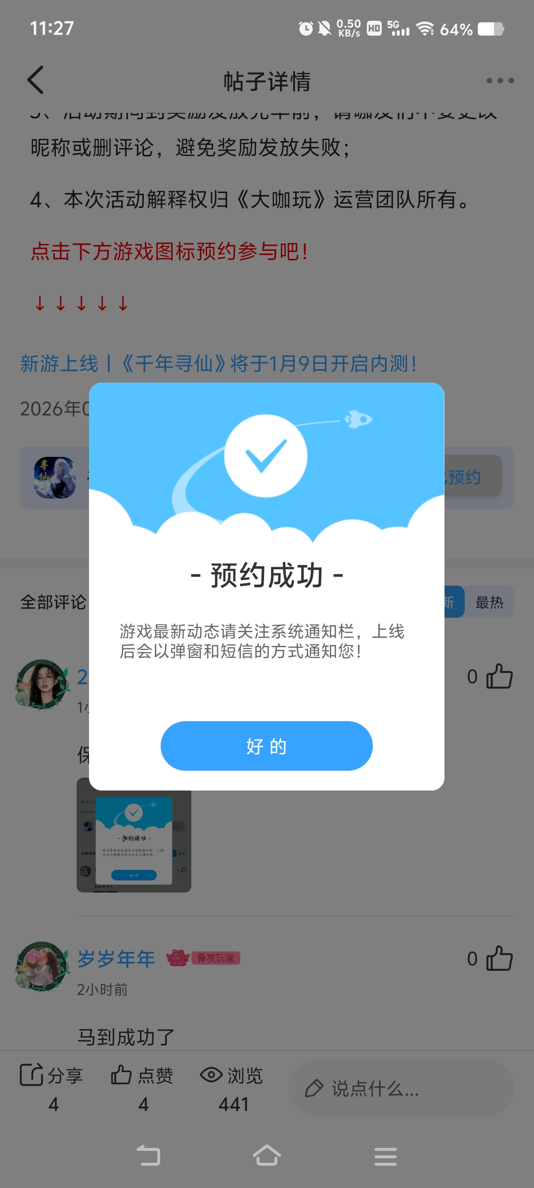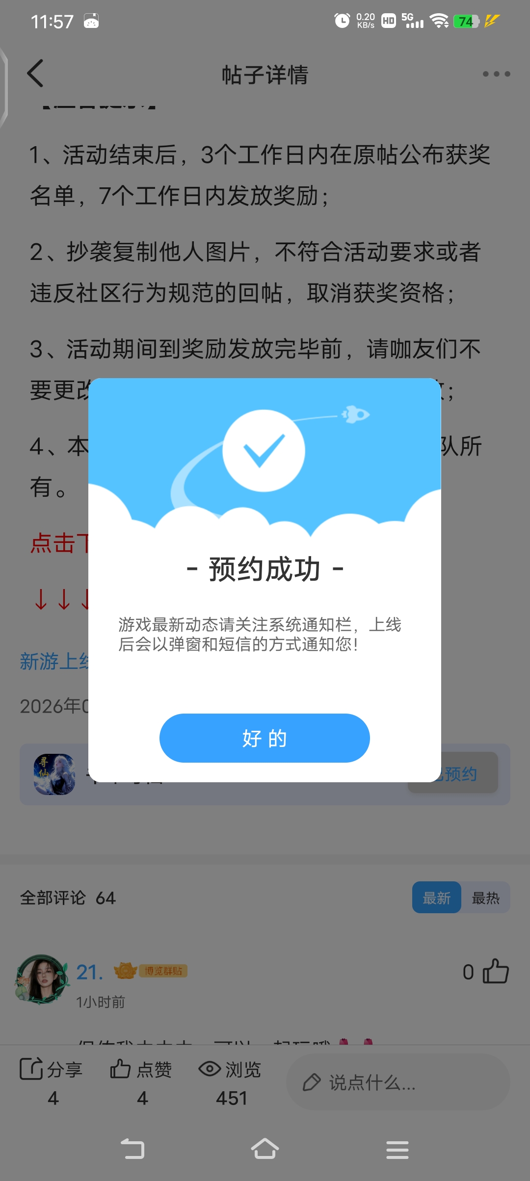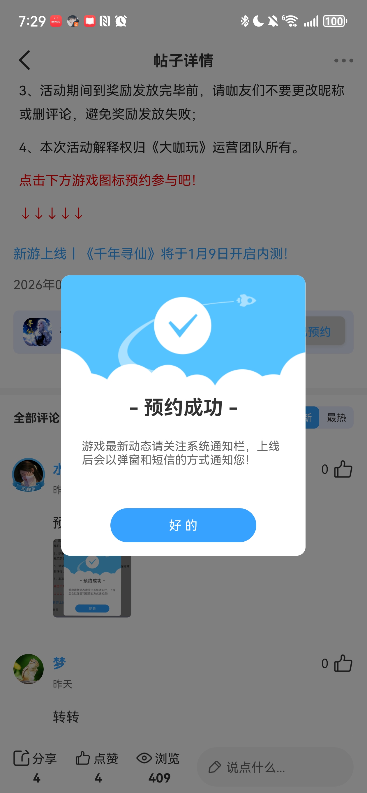 在本帖评论区分享预约游戏或首发后体验游戏截图或五星好评截图、评论,即可参与~