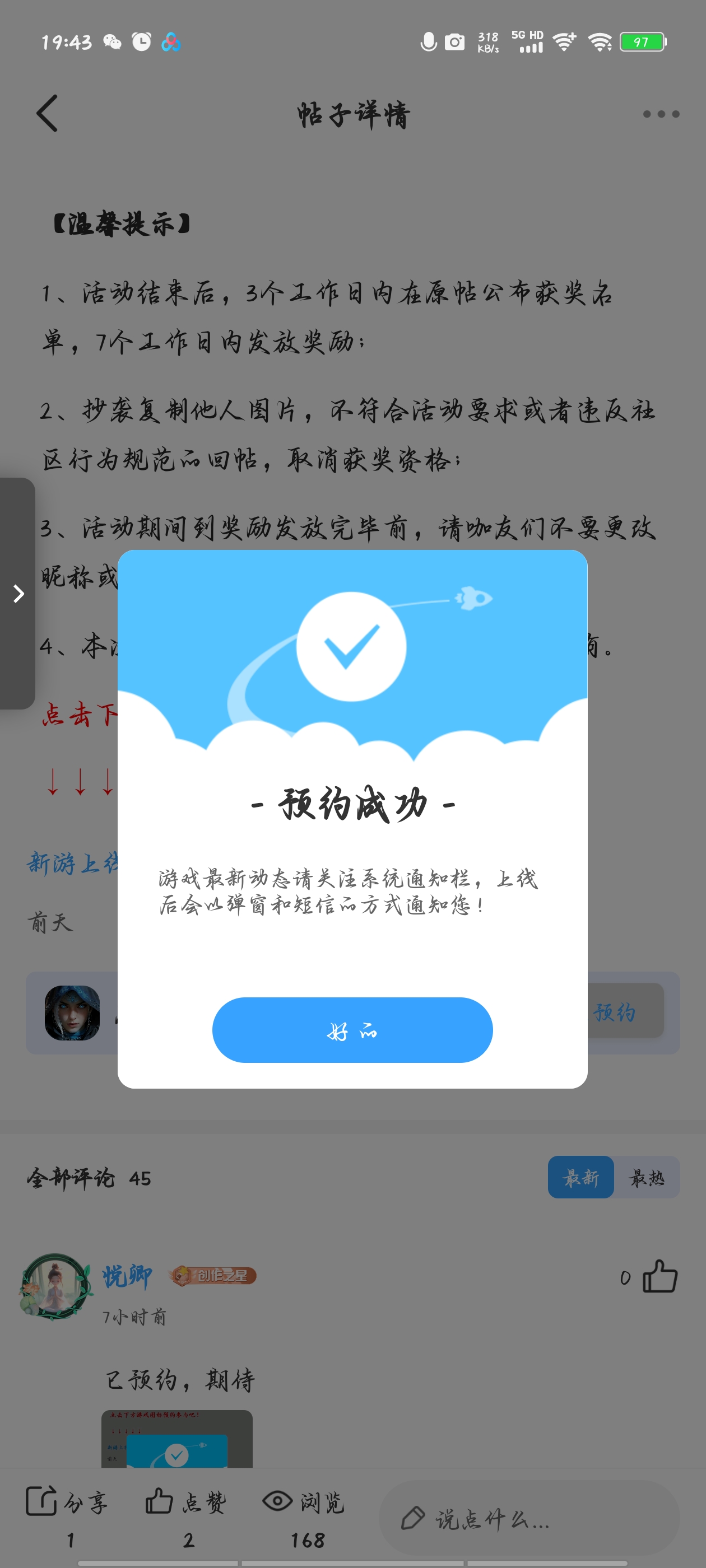 在本帖评论区分享预约游戏或首发后体验游戏截图或五星好评截图、评论,即可参与~