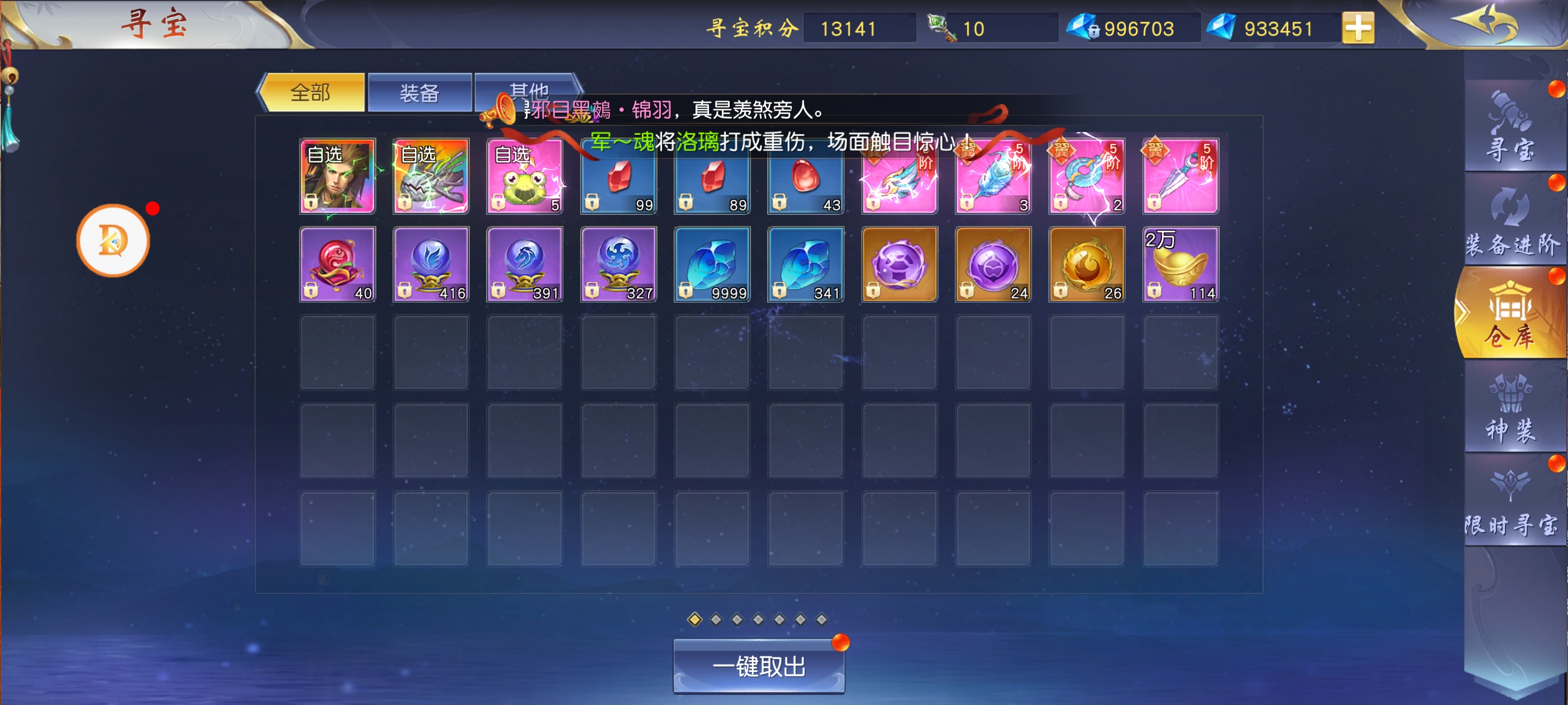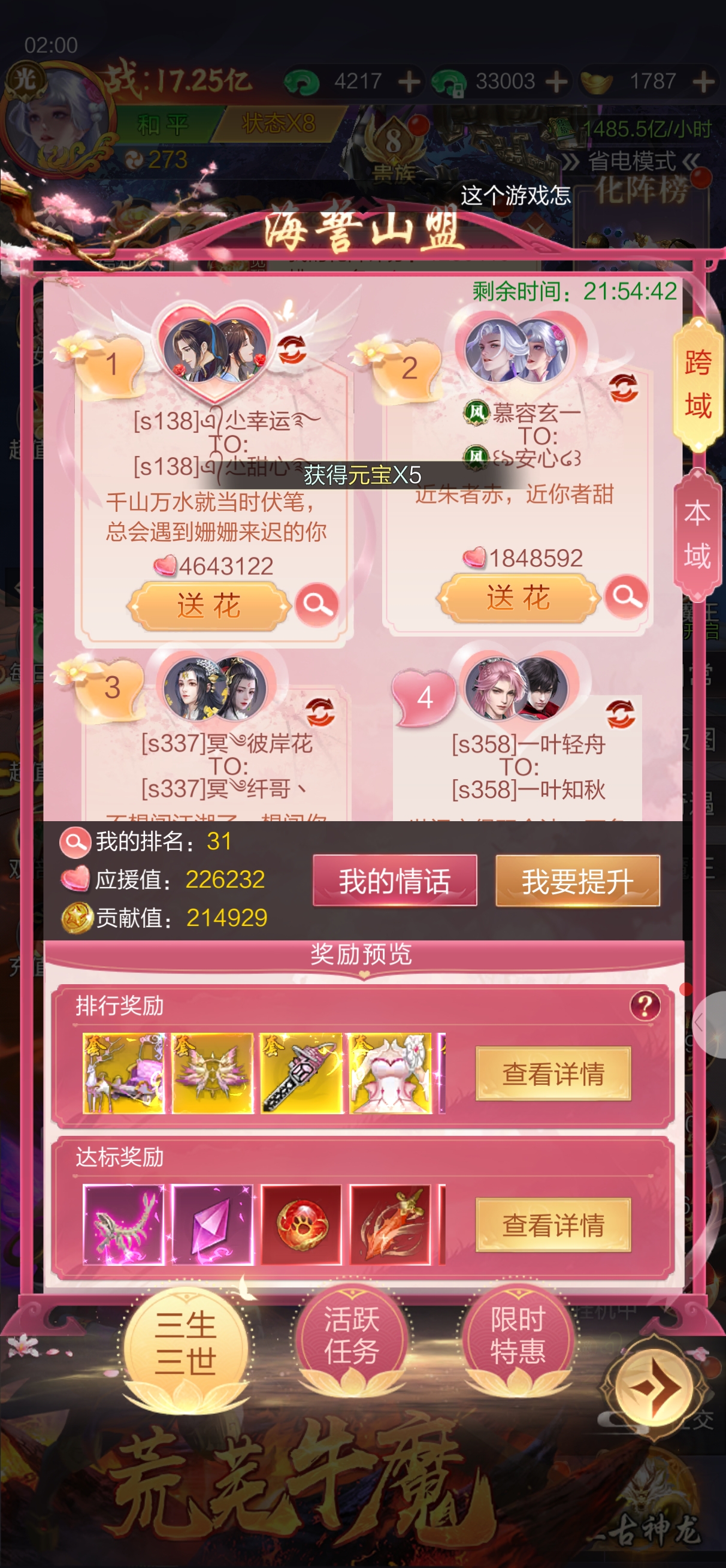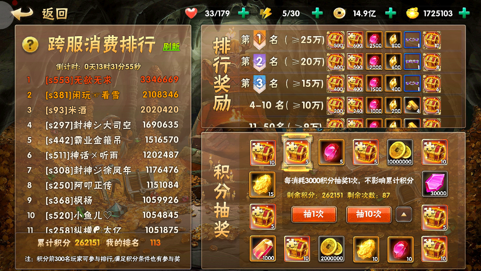 当然是心剑里每月的这个花榜了,最后时刻看着榜上的仙友们你争我抢的别提多刺激了,我都替她们紧张。