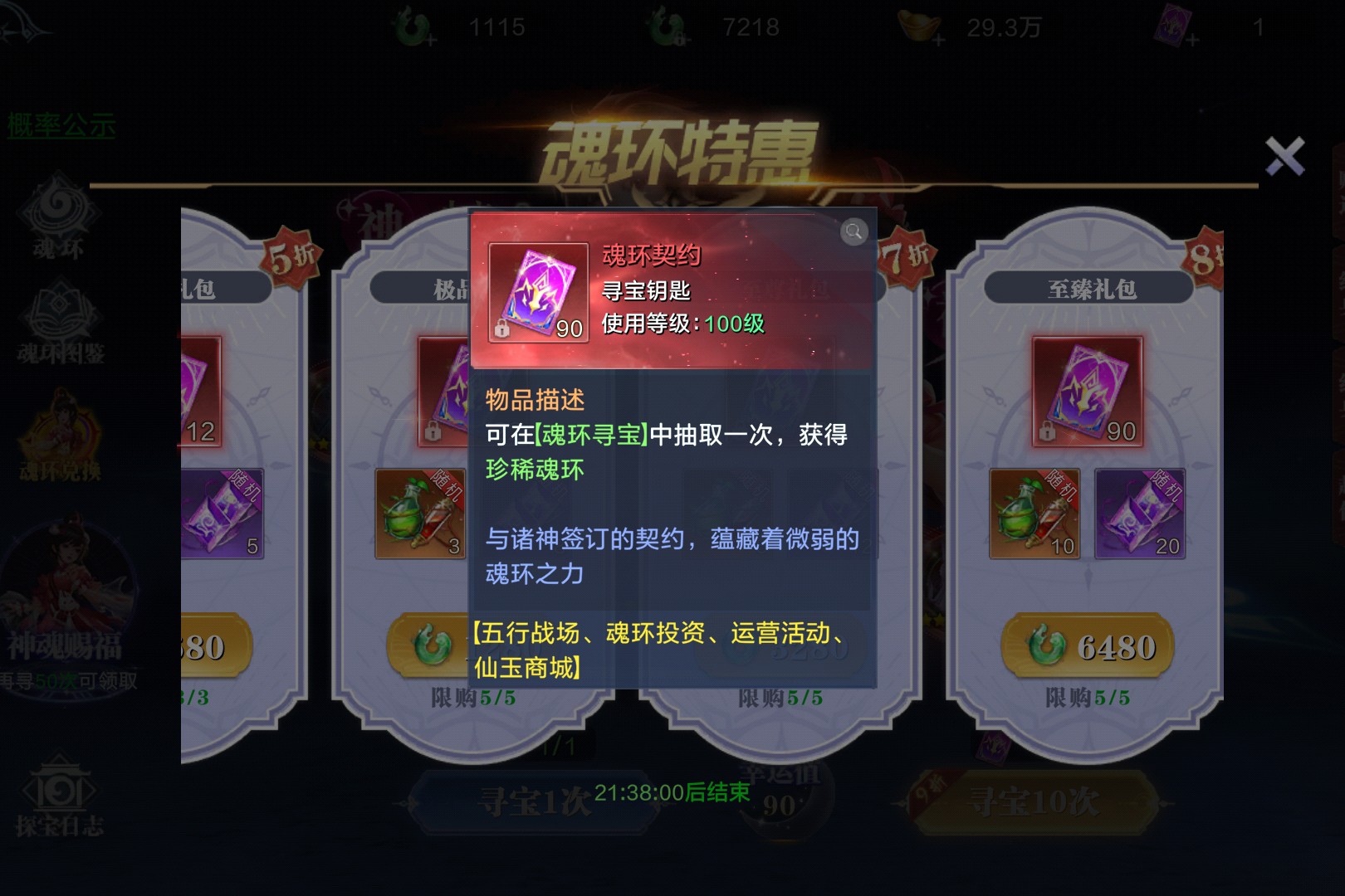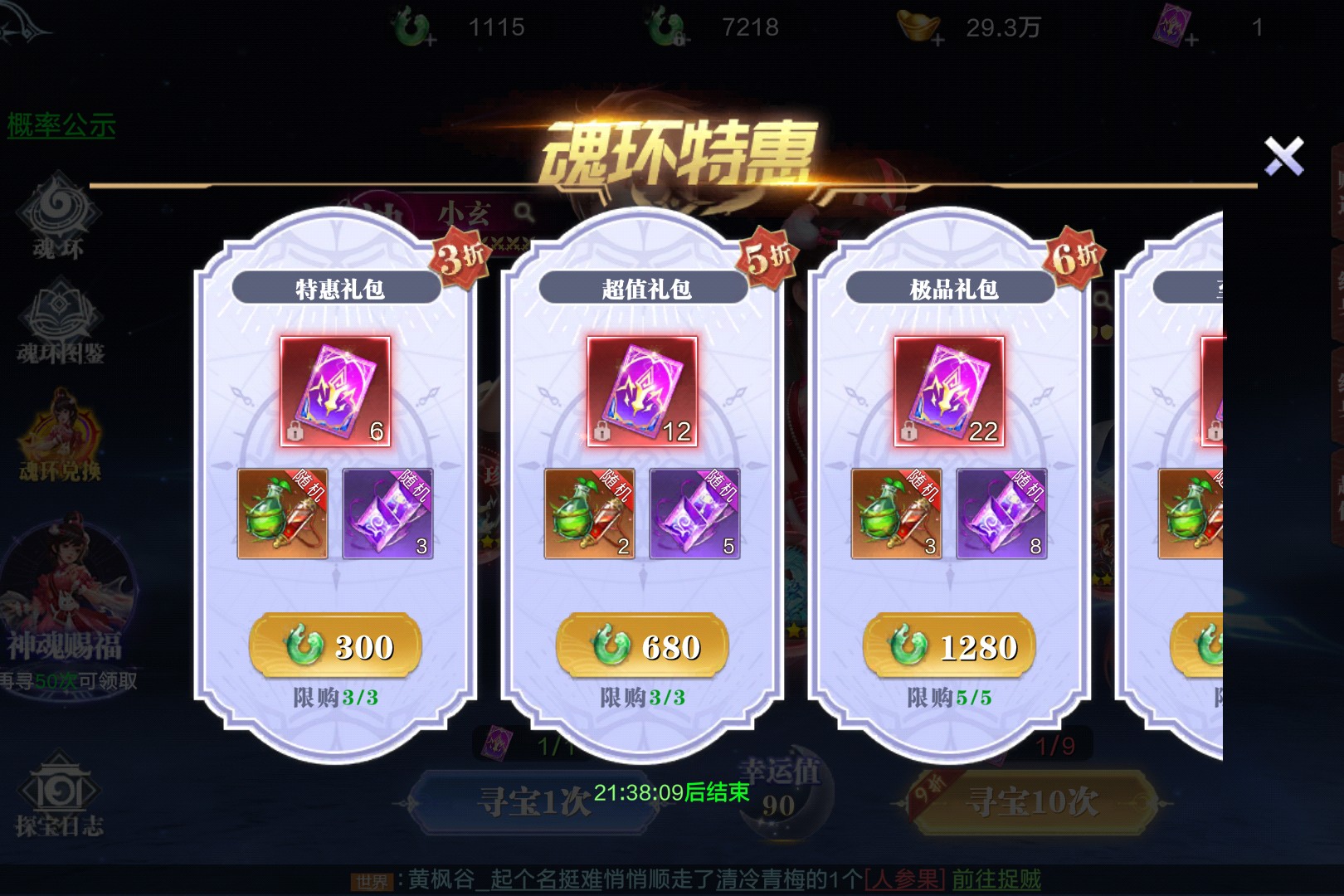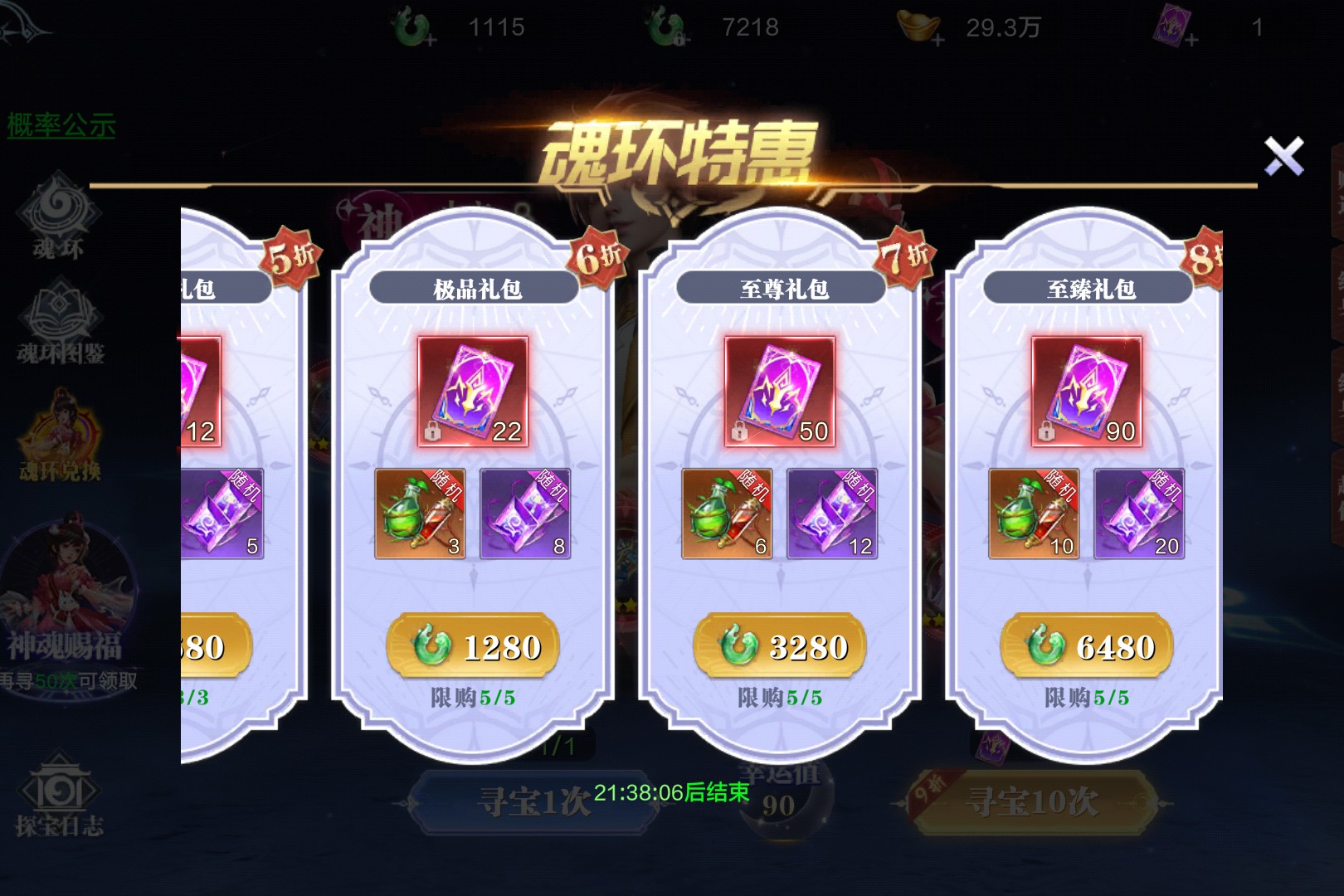 魂环特惠活动福利直接拉满从300绑玉的特惠礼包到6480绑玉的至臻礼包,各档位都能薅到海量魂环契约与珍稀道具。魂环契约100级即可使用,是魂环寻宝的关键钥匙,能抽取珍稀魂环。特惠礼包限购3份,至臻礼包则含90个魂环契约,还有大量养成材料附赠,活动倒计时仅剩21小时,赶紧囤货解锁强力魂环,让修仙战力再上台阶!