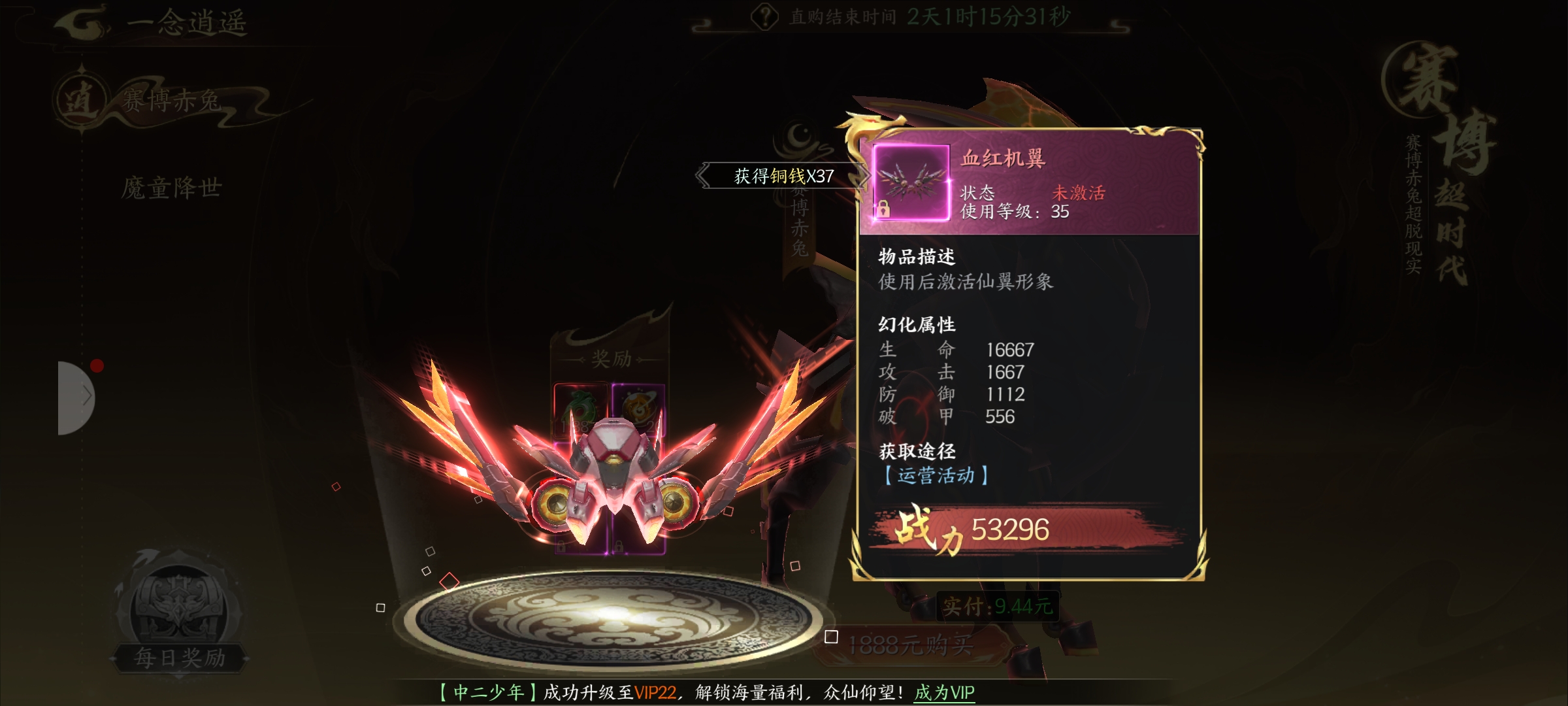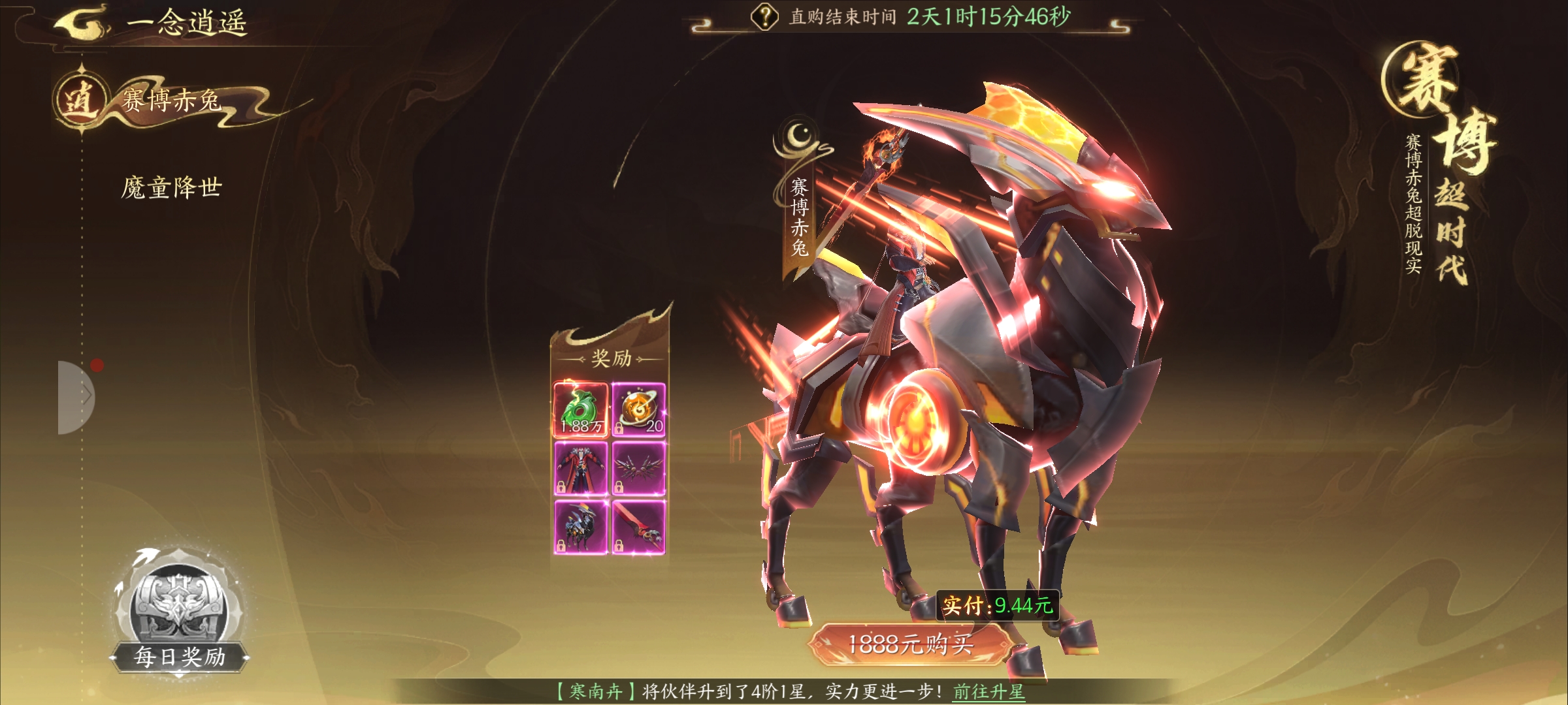 赛博赤兔 作者:一鹿向钱 发布日期:昨天 一念逍遥里赛博赤兔礼包买了之后灵玉全额返还,相当于白拿奖励。里面有超帅的武器“慕清温岚武”、好看的衣服“慕清温岚衣”、炫酷的仙翼“血红机翼”,还有厉害的坐骑“赛博赤兔”,战力加成超香。礼包只要9.44元,想提升战力、换新外观的别错过,赶紧看看+! 全部评论 9 最新 最热 苏打水 5小时前 0 可以呀 贰呆子 5小时前 0 升战力 糖 7小时前 0 快乐你我他 夏晴 7小时前 0 自在的岩石与草木 瑶一瑶 7小时前 0 很突然 圆圈 7小时前 0 认真对待 浅念 7小时前 0 好看的衣服 沐彩子 15小时前 0 赤兔 渺渺 昨天 0 😀 推荐游戏 查看更多 > 双生幻想 上线送百抽,SSR美少女随便抽! 二次元 卡牌 晴空双子 策略弹射,创新塔防 卡牌 二次元 绝世万剑录 开局送霸服套装,双修送代金券 仙侠 挂机 魔之序曲 暗黑幻境猎魔屠龙,成就传奇史诗 魔幻 挂机 全民江湖 复刻经典端游,重现当年热血 武侠 挂机 剑中 一款传统、偏暗黑、武侠风多人 MMO 游戏 武侠 多人在线 今日热榜