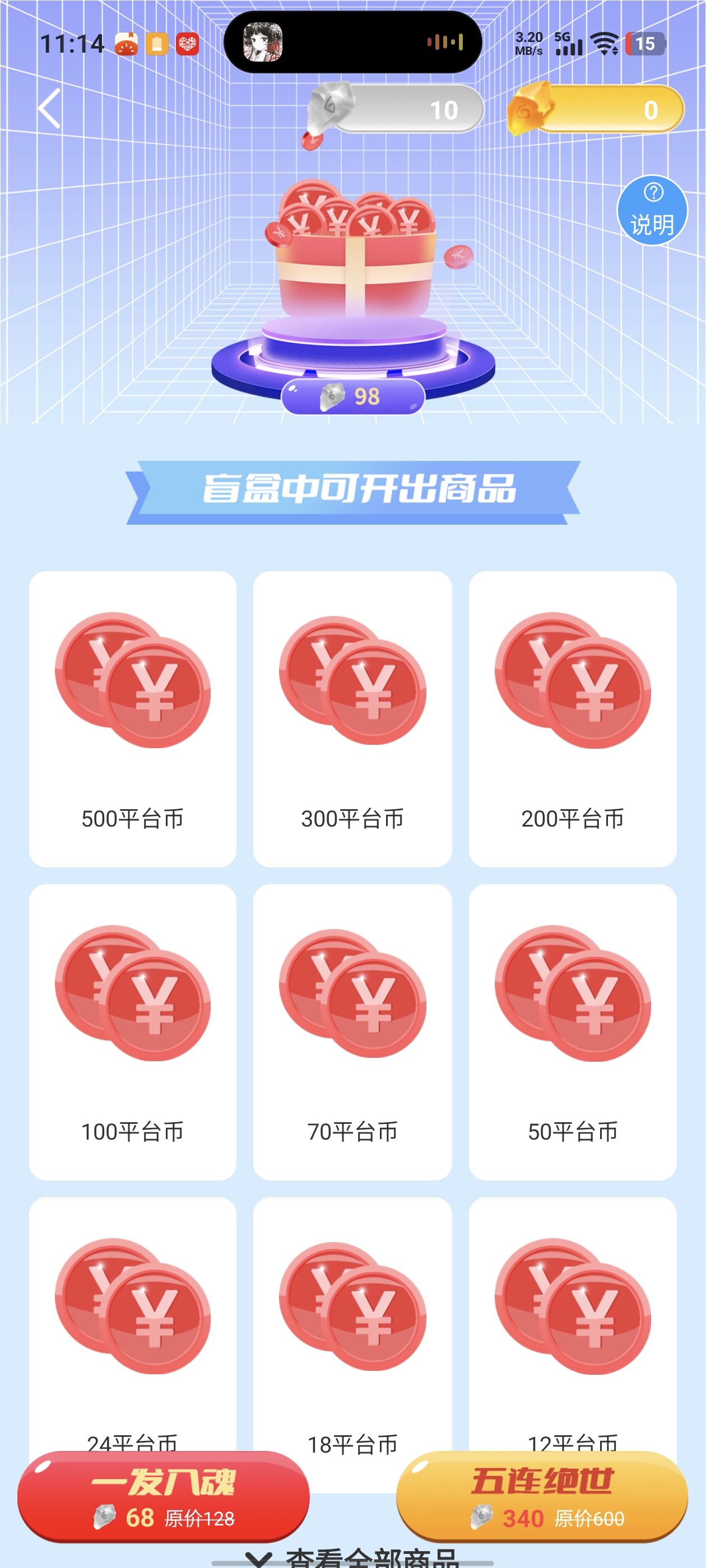 原价98银符石的平台币盲盒限时68银符石~狠狠心用咖币抽了3次,以为会中个50,因为先是12,后面24按常理来说再来一应该50了。。。。偏偏策划不按常理出牌😂😂😂亏了亏了,最近也是黑的一批,抽平台币也黑,抽变异也黑{(°△°;+"}!啥时候让我白一白呀~有银符石的小伙伴不要错过了~毕竟最高500平台币呢~搏一搏单车变摩托~