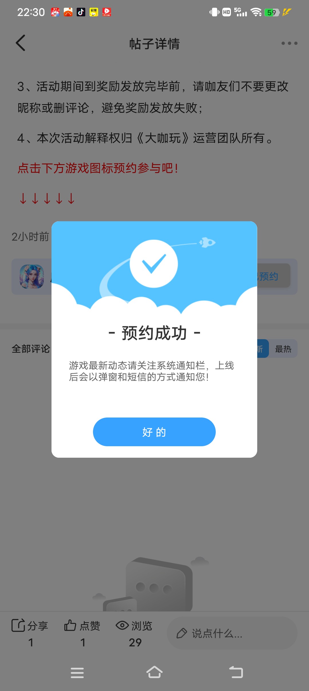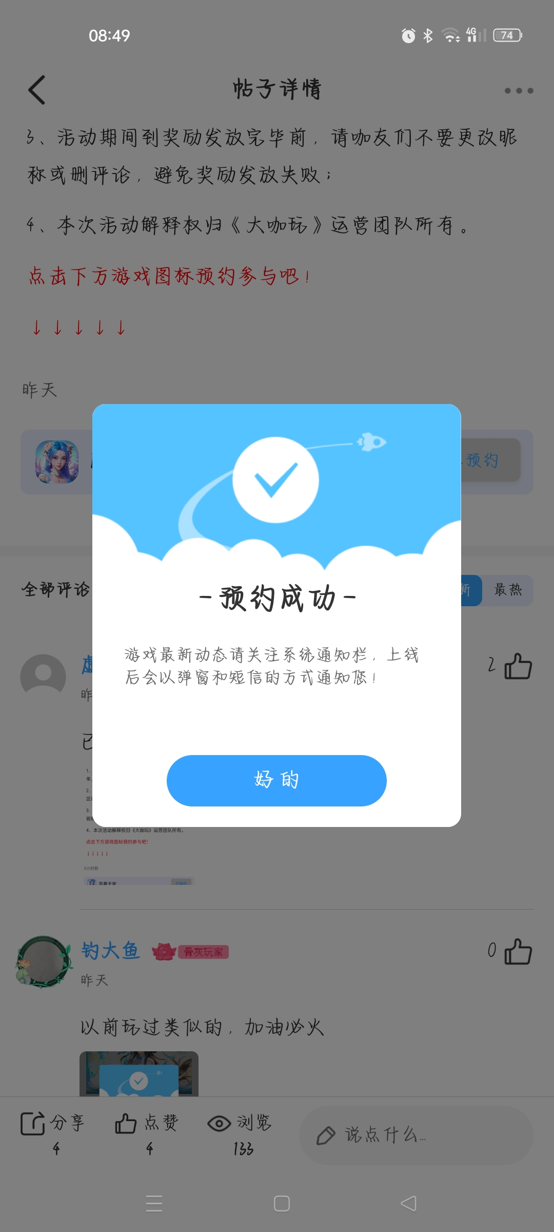 预约成功,期待游戏