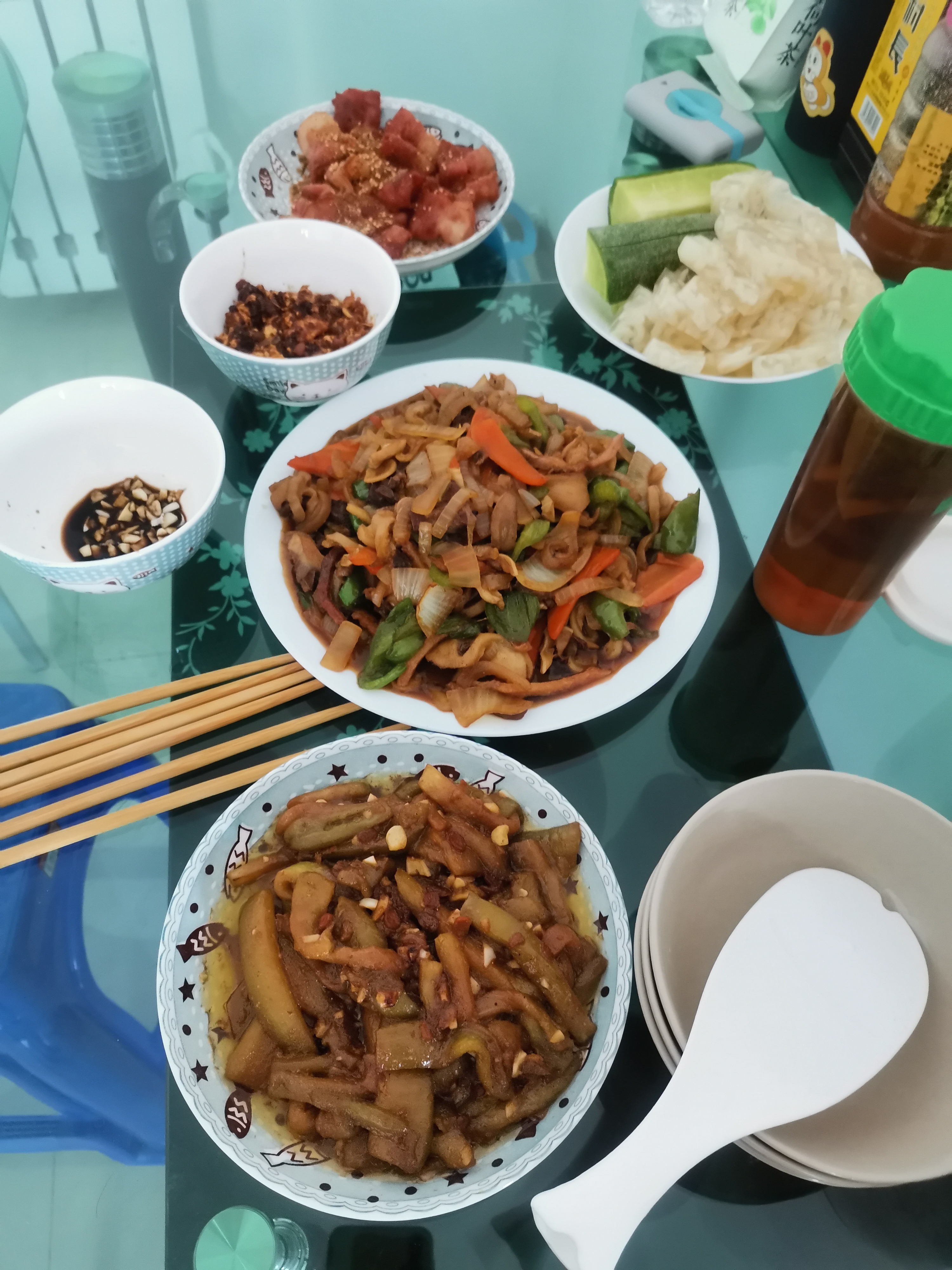 锅碗瓢盆叮当响,灶火不熄,蒸煮煎炸忙不停……