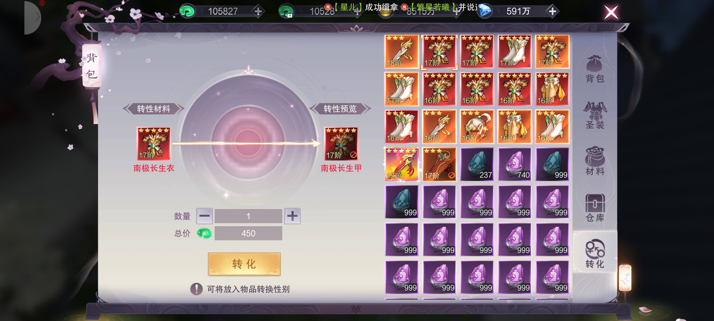 踏入心剑奇缘的神秘工坊,周身符文光芒大盛。只见你将身上装备放置于法阵中央,刹那间,法阵释放出夺目光芒,光芒中似有无数符文穿梭涌动。眨眼间,装备便完成性别转化,属性与外观焕然一新,绽放出更为强大的力量+,助你闯荡仙侠世界。