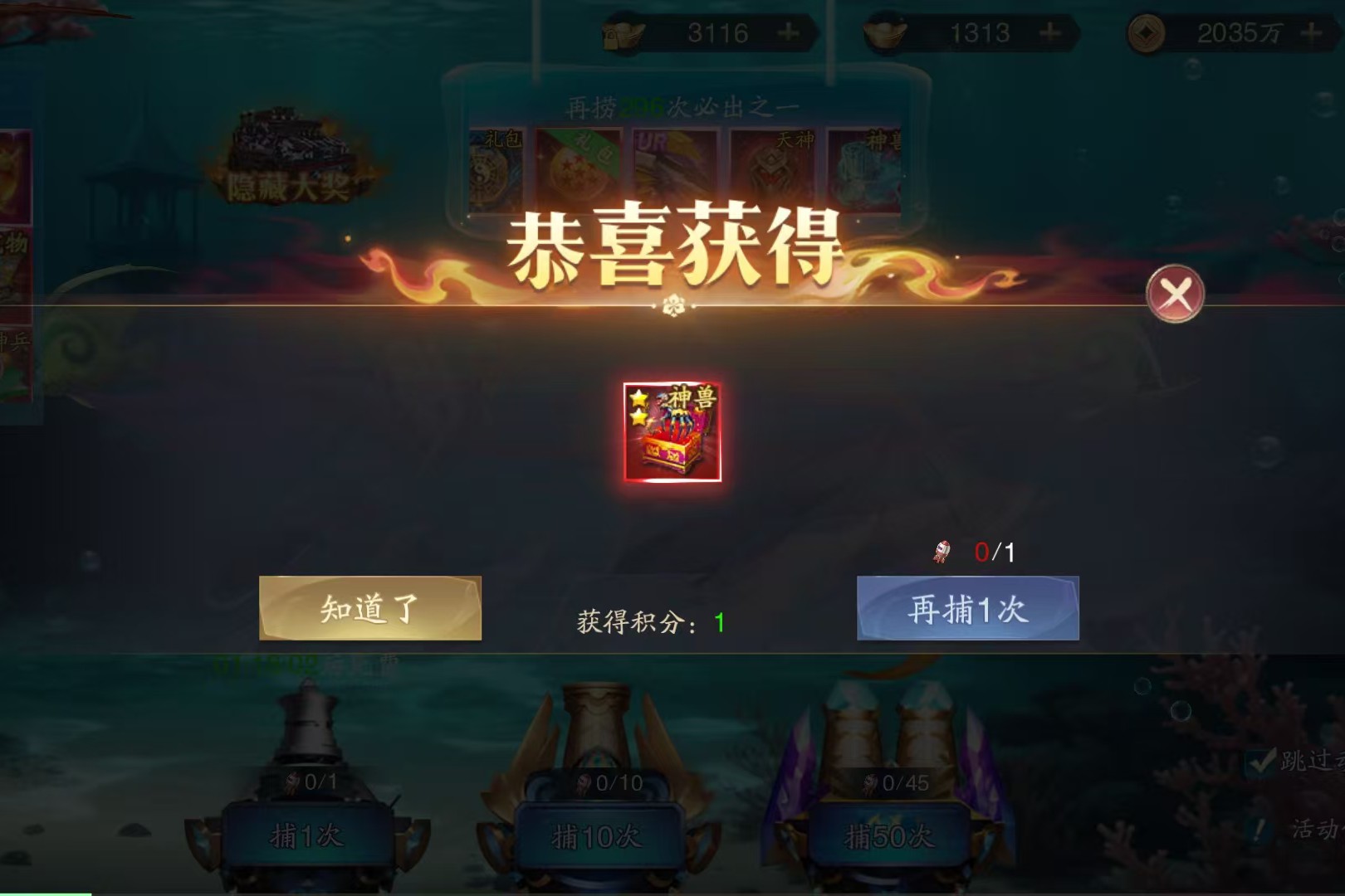 每次出来这个活动都会不自觉的点几下,看到300次必出大奖也很心动,需要点6次50个这样打九折是需要45个花费2250元宝,抽一个大奖需要13500元宝,我这元宝远远不够啊为了心爱的大奖存起来,距离目标还有一万二我咋这么没信心呢😂😂😂