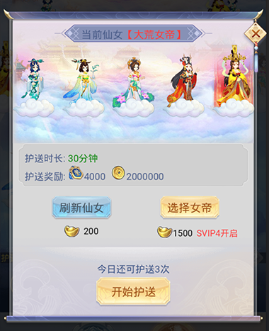 刷新后,护送的仙女会比当前更加尊贵,而一旦送达终点即可获得更为丰厚的奖励。