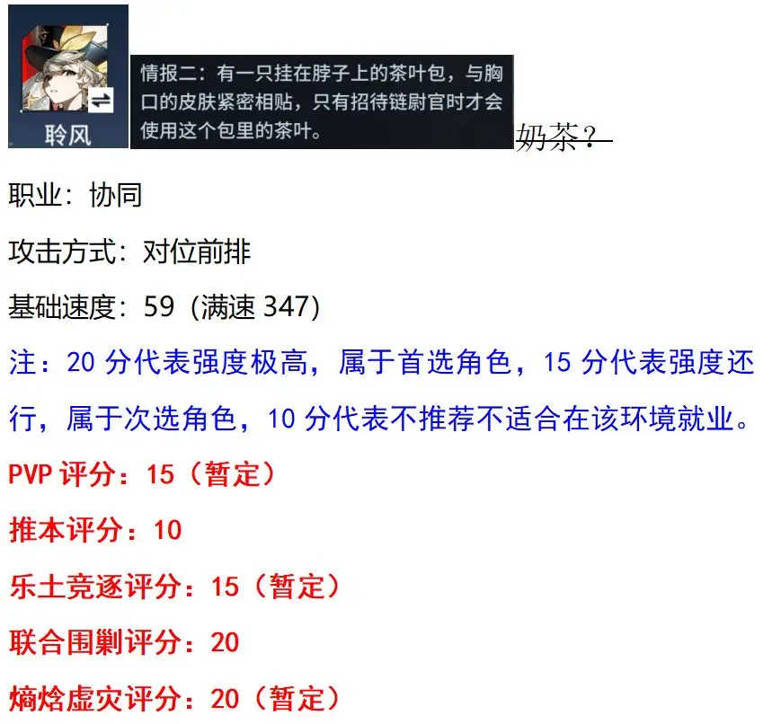 战员:瞳光 职业:特勤攻击方式:对位优先基础速度:63(满速392)(开局比燕鸥快比冷蛟慢)战员评价PVP评分:S 推本评分:A乐土竞逐评分:S(暂定) 联合围剿评分:A