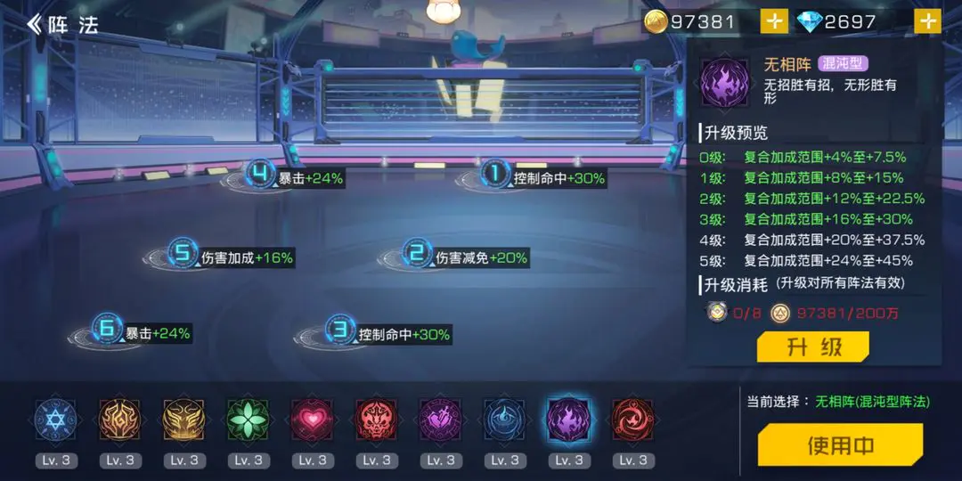 推荐的阵容:五相阵排列如下:(1)号位:械族 千手(2)号位:人族 太白(3)号位:人族 貂蝉(4)号位:械族 干将莫邪(5)号位:人族 占卜师(6)号位: 兽族 貔恘替补位置:前排:兽族 :猫又 或